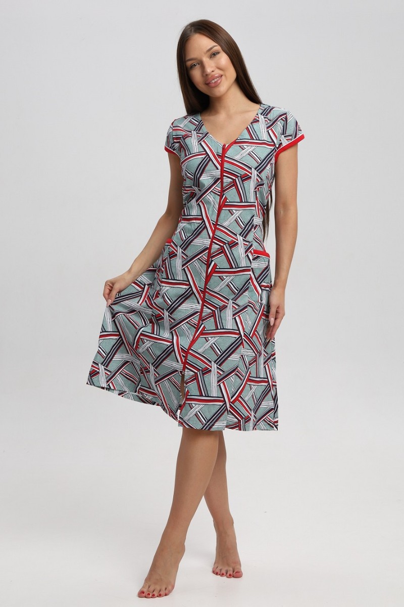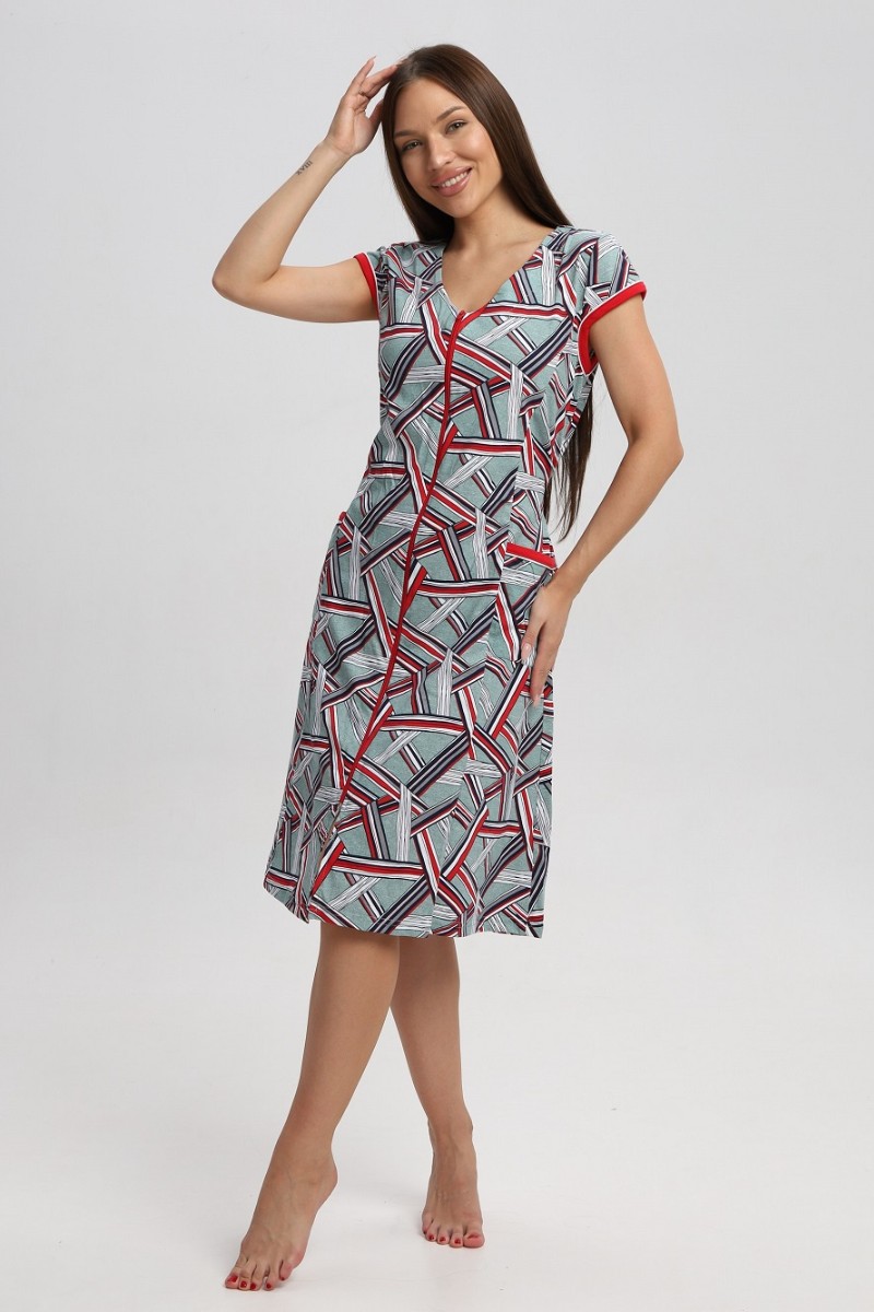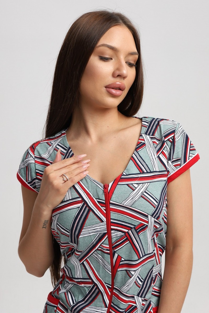 Халат женский 021 кулирка (р-ры: 48-62) зеленый-красный