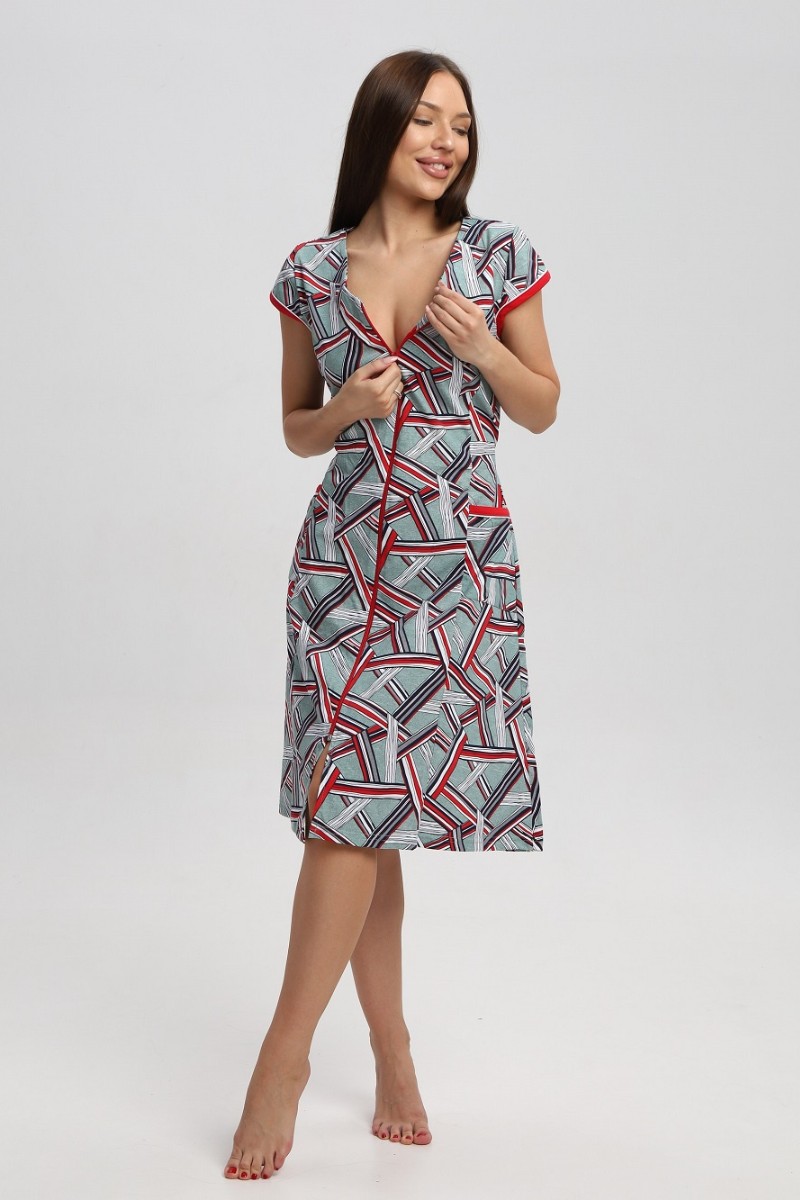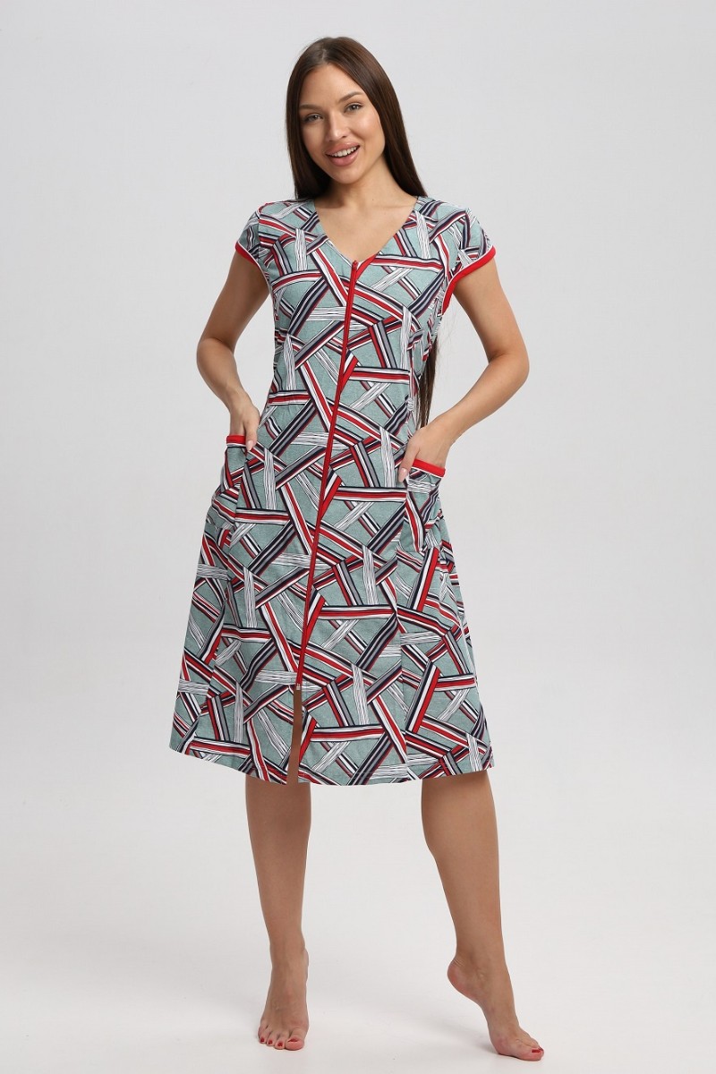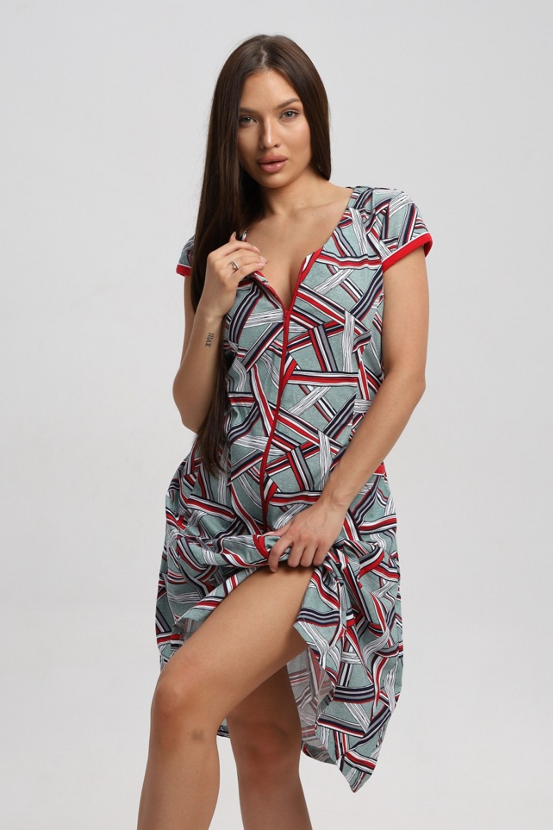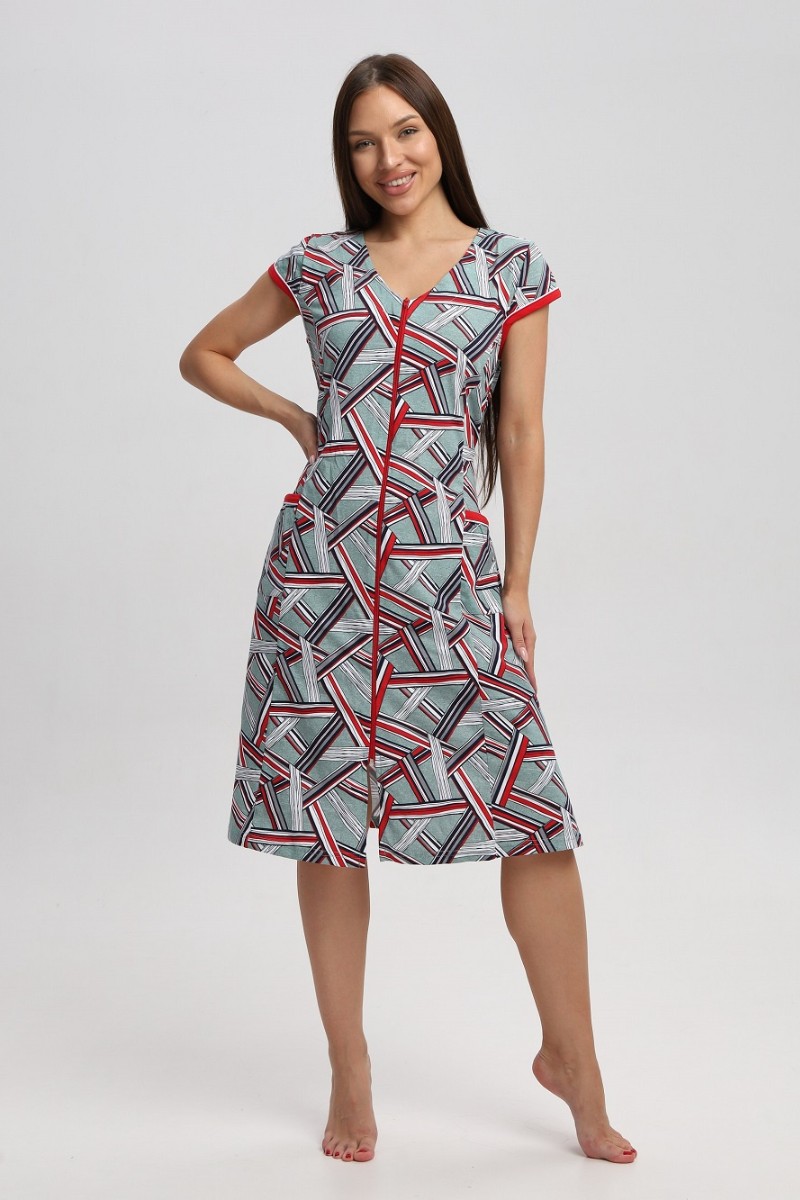 Халат женский 021 кулирка (р-ры: 48-62) зеленый-красный