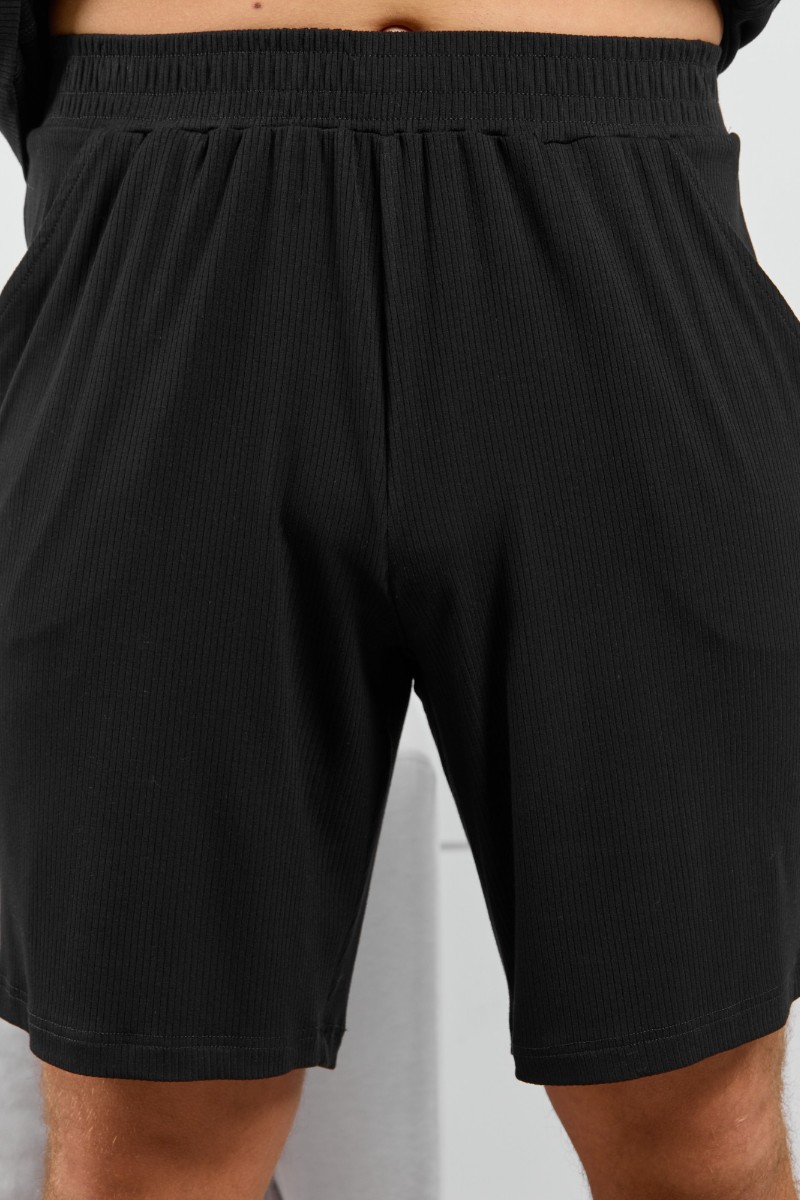 Представляем Вашему вниманию мужские шорты из пластичного однотонного трикотажного полотна в рубчик, приятного к телу. Модель свободная, с боковыми карманами с обтачными входами, на притачном поясе с отстроченной эластичной тесьмой.