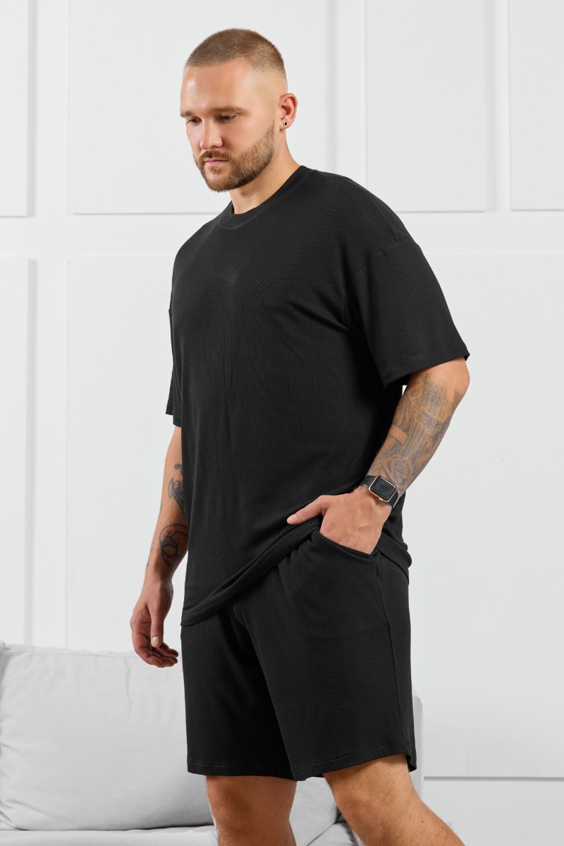 Шорты мужские "Алессандро-4" фактурный трикотаж (р-ры: 48-58) черный