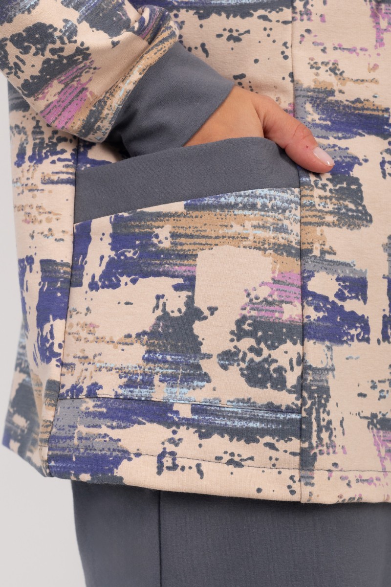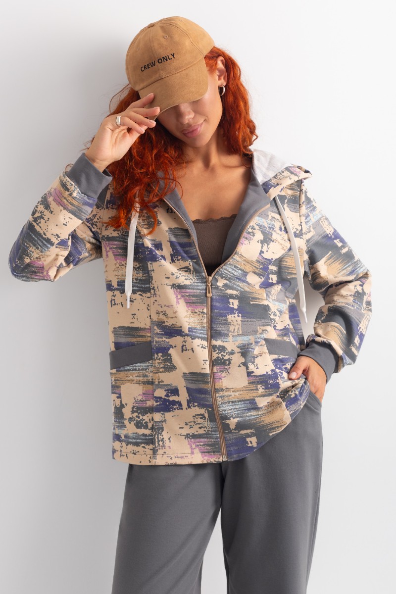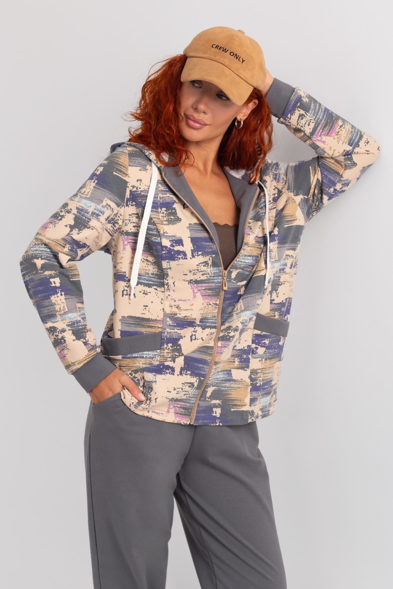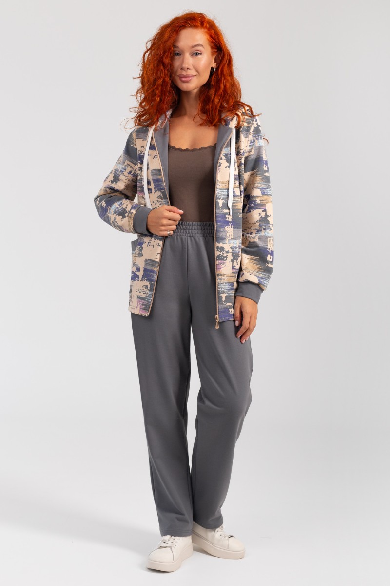 Представляем Вашему вниманию комфортный женский костюм двойку прямого силуэта, который состоит из кофты, украшенный контрастным и изящным принтом, и длинных брюк. Кофта дополнена вместительными карманами и удобным капюшоном. Комплект изготовлен из высококачественного материала, устойчивого к износу.