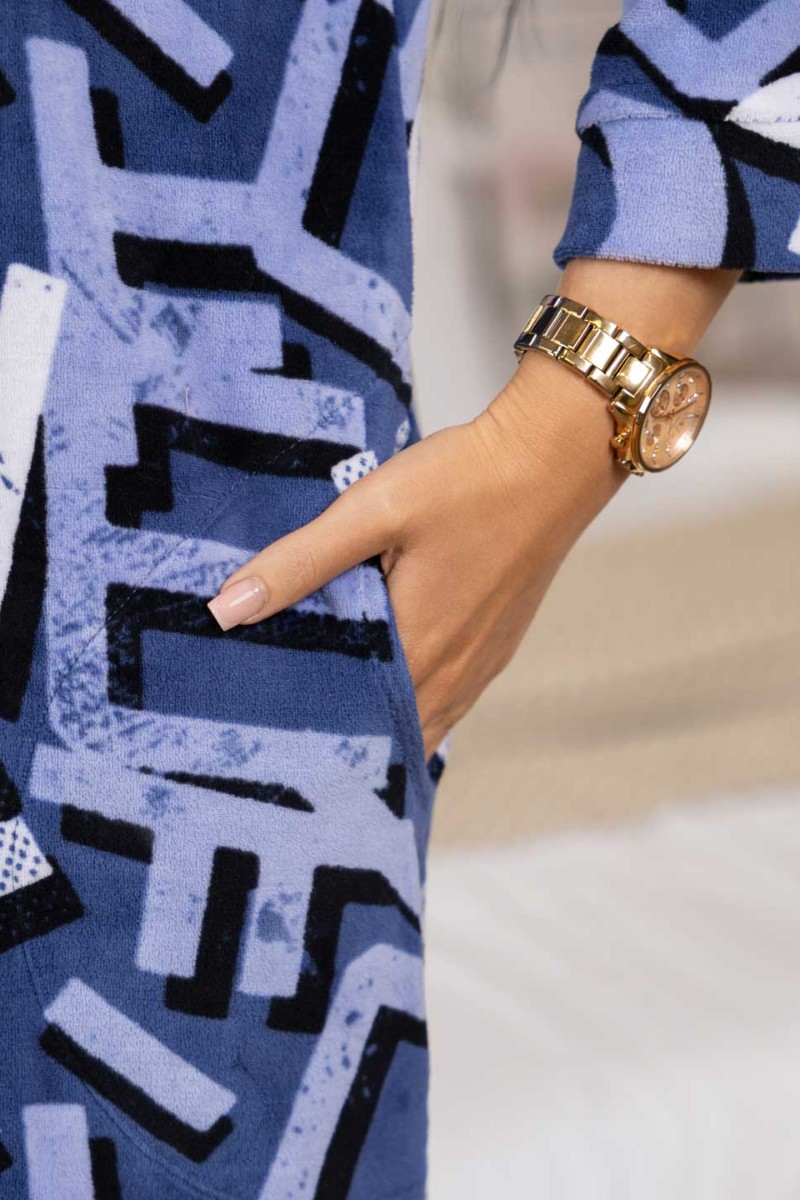Представляем Вашему вниманию утепленный женский халат из хлопкового велюра. Халат прямого силуэта, с округлой горловиной, базовым втачным рукавом с манжетой, карманами в боковых швах, на молнии с красивой металлической собачкой.
