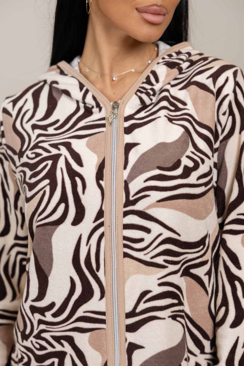 Халат женский 1948М/6 махра (р-ры: 48-70) бежевый-коричневый 2
