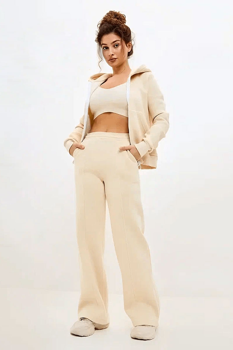 Представляем Вашему вниманию женский костюм двойку - не просто элемент гардероба, это удивительное сочетание комфорта, стиля и практичности. Костюм состоит из толстовки и брюк палаццо с прошитой стрелкой, создавая идеальный образ для активного образа жизни. Этот теплый спортивный костюм обеспечивает непревзойденный комфорт в зимнее время года. Сочетание высокого качества и стильного дизайна делает этот костюм универсальным - подходящим как для занятий спортом на открытом воздухе, так и для повседневной носки. Благодаря своему практичному дизайну, он станет отличным выбором для любого случая. Штаны и укороченная толстовка с капюшоном имеют удобный крой, обеспечивая полную свободу движений, а также максимальный комфорт во время активных занятий. Высококачественный материал футер трех нитка с начесом обеспечивают сохранение тепла и защиту от холода в любую погоду весной и осенью. Будьте уверены, что этот теплый, удобный и практичный женский спортивный костюм принесет вам только приятные эмоции и высокое качество. Покупая этот утепленный костюм, вы инвестируете в свою комфортность и стиль, наслаждаясь каждым моментом вашей активной жизни.