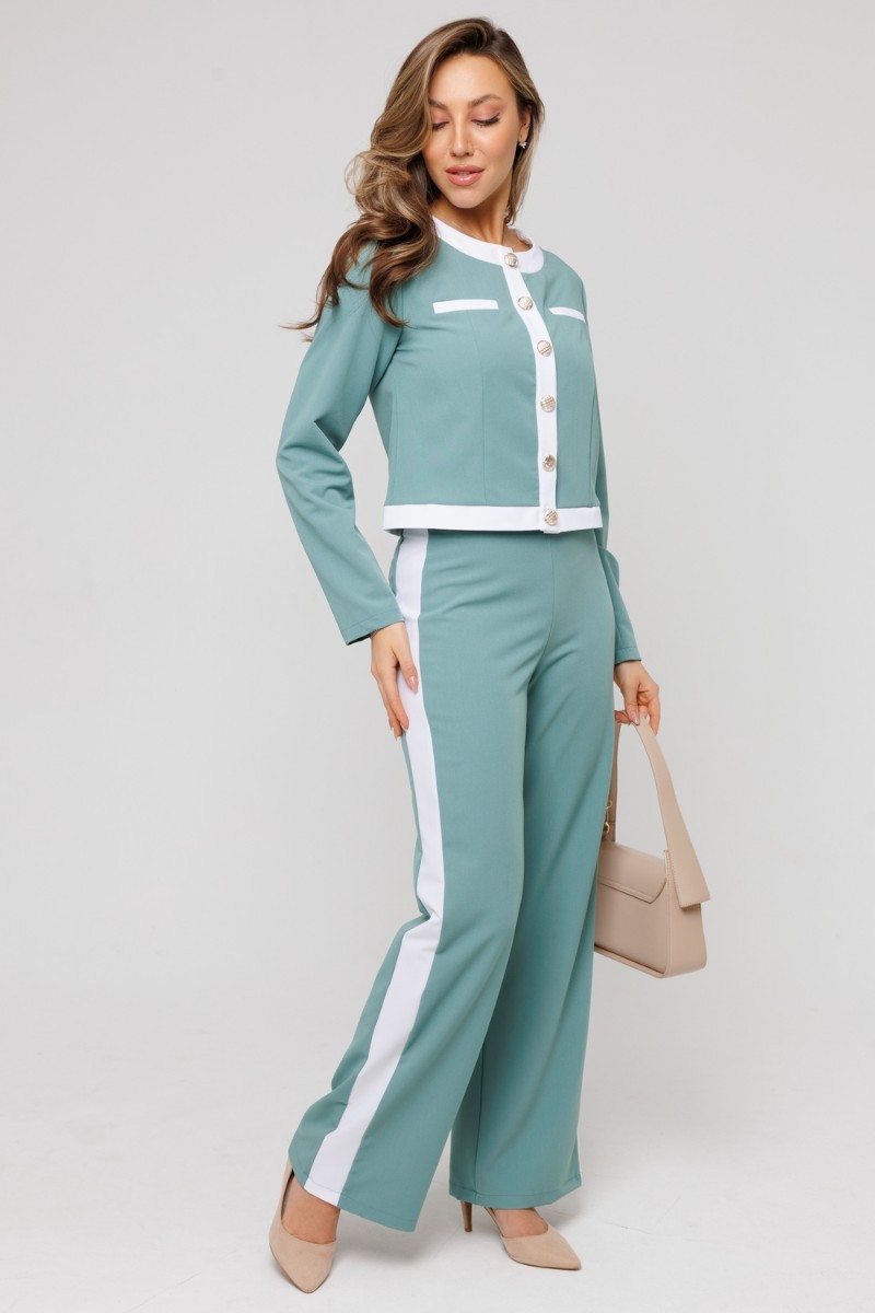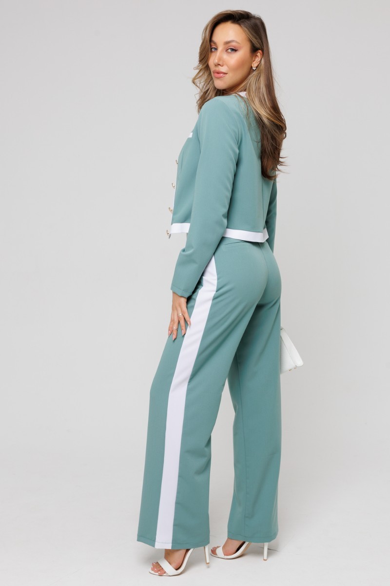 Представляем Вашему вниманию костюм офисный вечерний от российского производителя бренда женской одежды. Жакет костюма застегивается на пуговицы, имеет имитацию карманов. По низу, переду и горловине жакета имеется контрастная планка, которая придает элегантности образу. Брюки свободного кроя по бокам имеют лампасы контрастного цвета, застегиваются на потайную молнию с левой стороны, сзади пресутсвуют имитация прорезных карманов. Этот стильный женский комплект идеально подходит для различных мероприятий, где требуется продемонстрировать уверенность и элегантность. Модель включает пиджак и брюки, что создает гармоничный образ. Базовый вариант подойдет для повседневного ношения в офис, на вечер или на деловое мероприятие. На любом празднике Вы будете чувствовать себя нарядно и комфортно. Благодаря гладкой фактуре материала и отсутствию ярких рисунков, двойка легко сочетается с любыми аксессуарами и обувью, делая его универсальным выбором для вечерних нарядов. Универсальность модели позволит носить его, в теплые весенний и летний сезоны. Женский брючный наряд выполнен из качественных материалов, обеспечивая комфорт на протяжении всего дня. Его классический дизайн легко комбинируется с различными аксессуарами, что позволяет создавать уникальные образы в зависимости от настроения и случая. Однотонная текстура делает его универсальным выбором для любого гардероба. Идеально подойдет для женщин невысокого роста, а также для высоких девушек. Каждый элемент костюма может носиться отдельно в сочетании с другими элементами гардероба, создавая стильные и модные образы. Трендовый костюм позволит подчеркнуть стройность Вашей фигуры. Модель доступна в больших размерах плюс сайз - 50, 52 и 54, будет шикарно смотреться в любом возрасте, подойдет для полных девушек и беременных женщин.