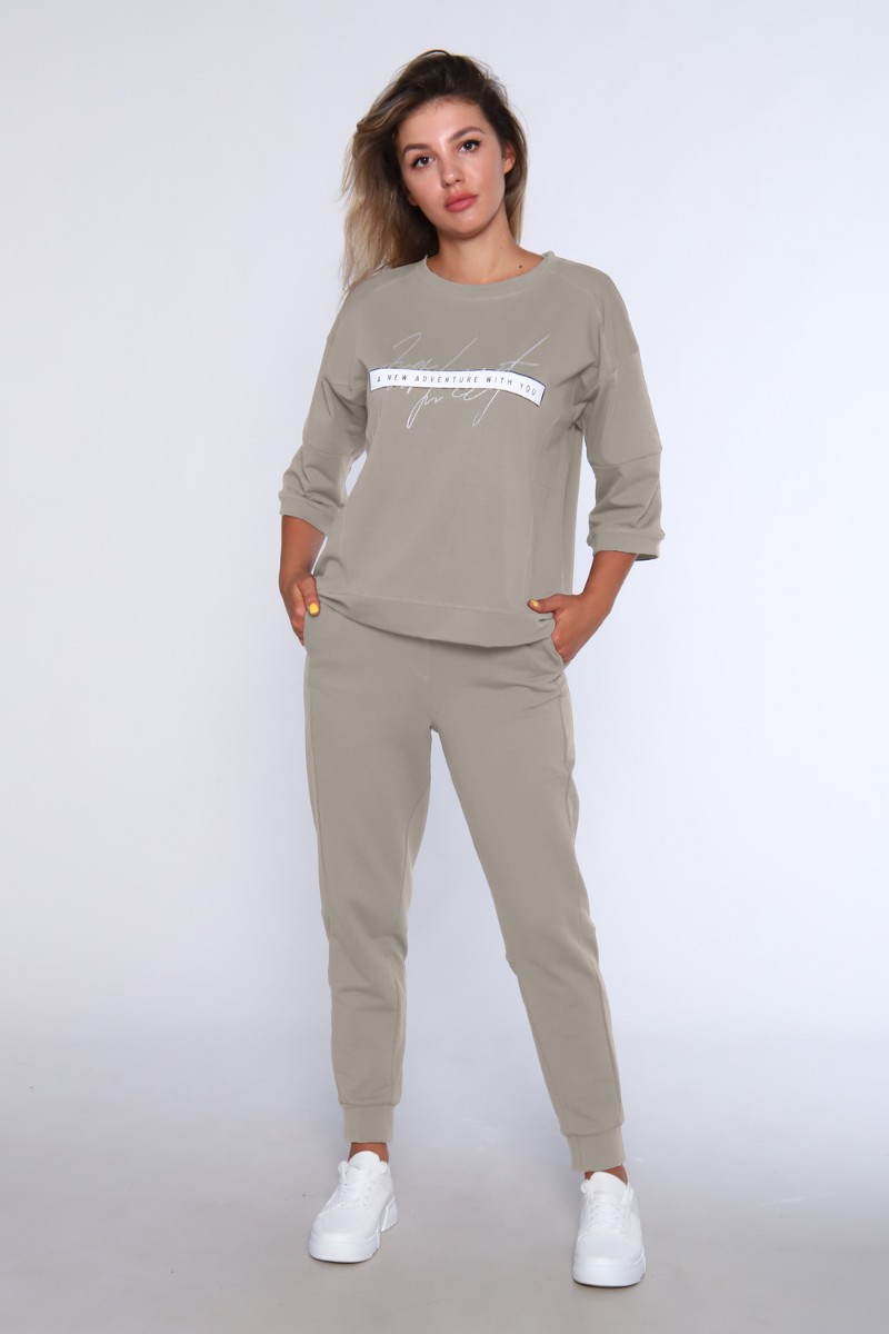 Костюм двойка женский №359 футер 2-х нитка (последний размер) темно-бежевый 48,50,52