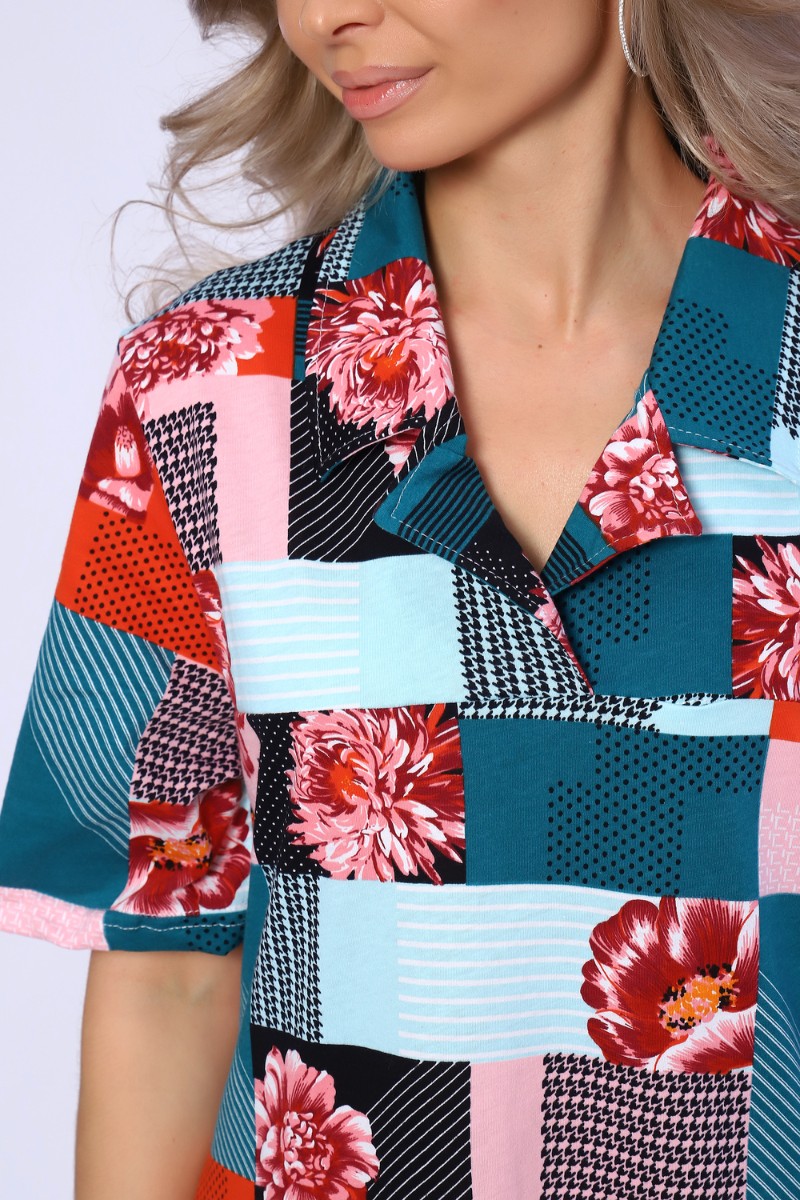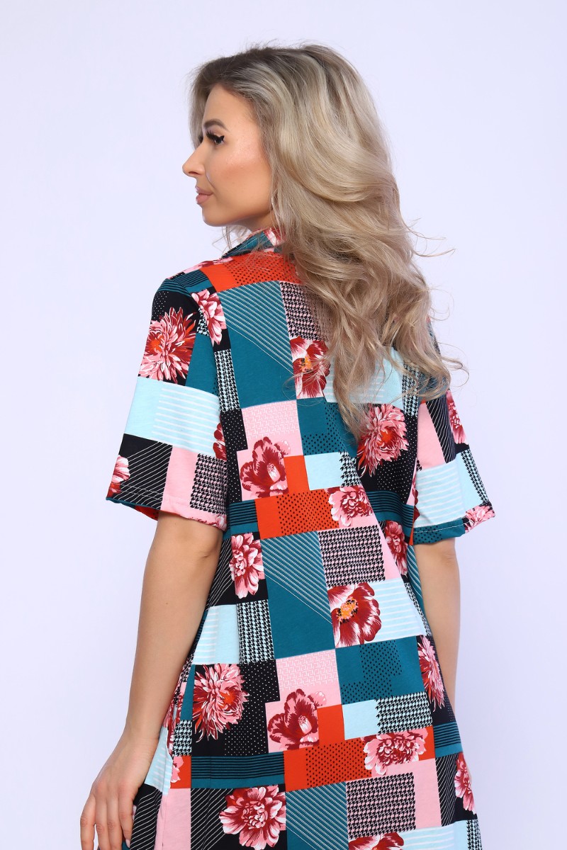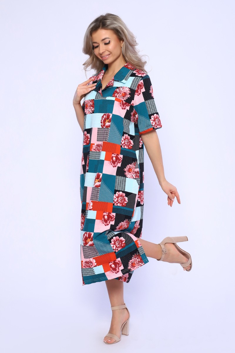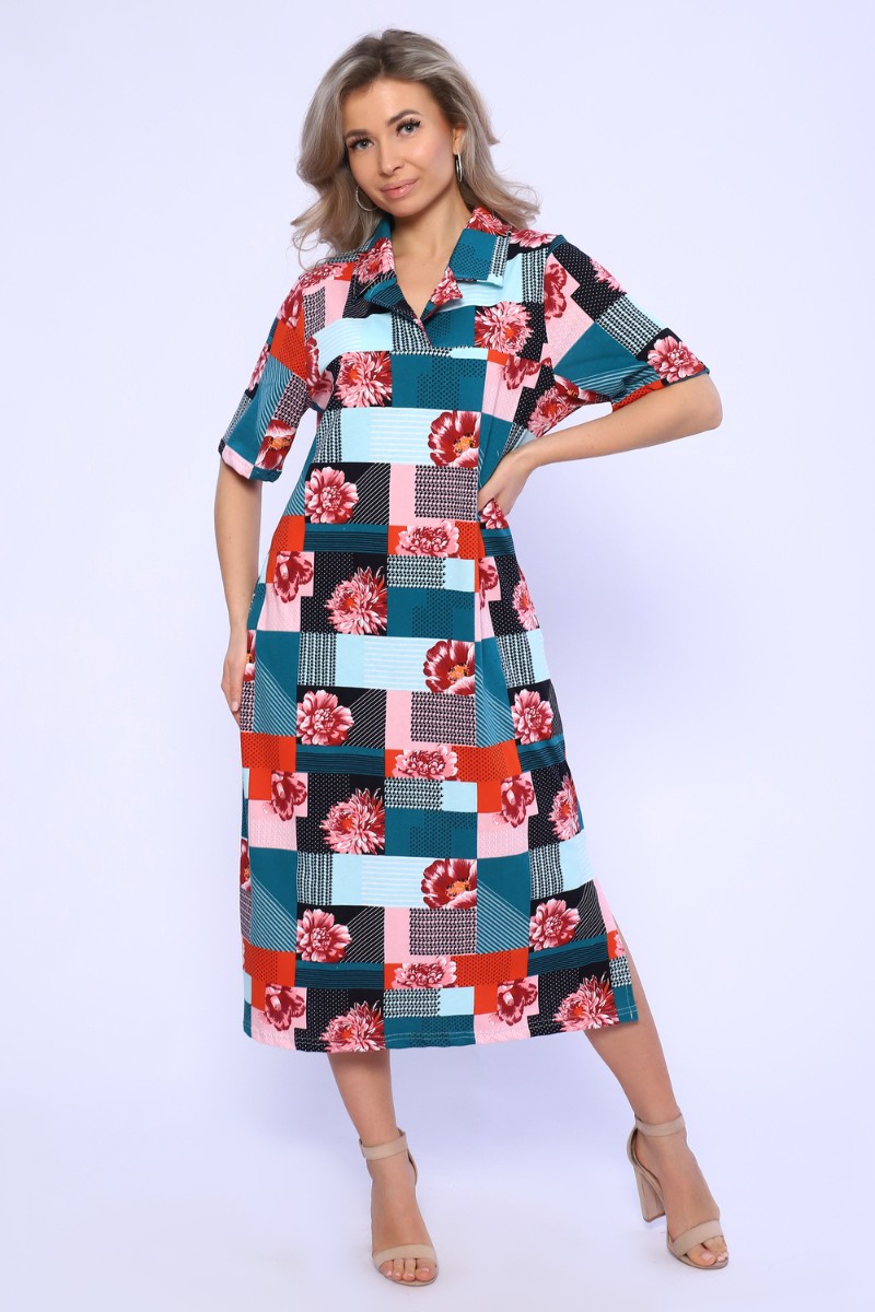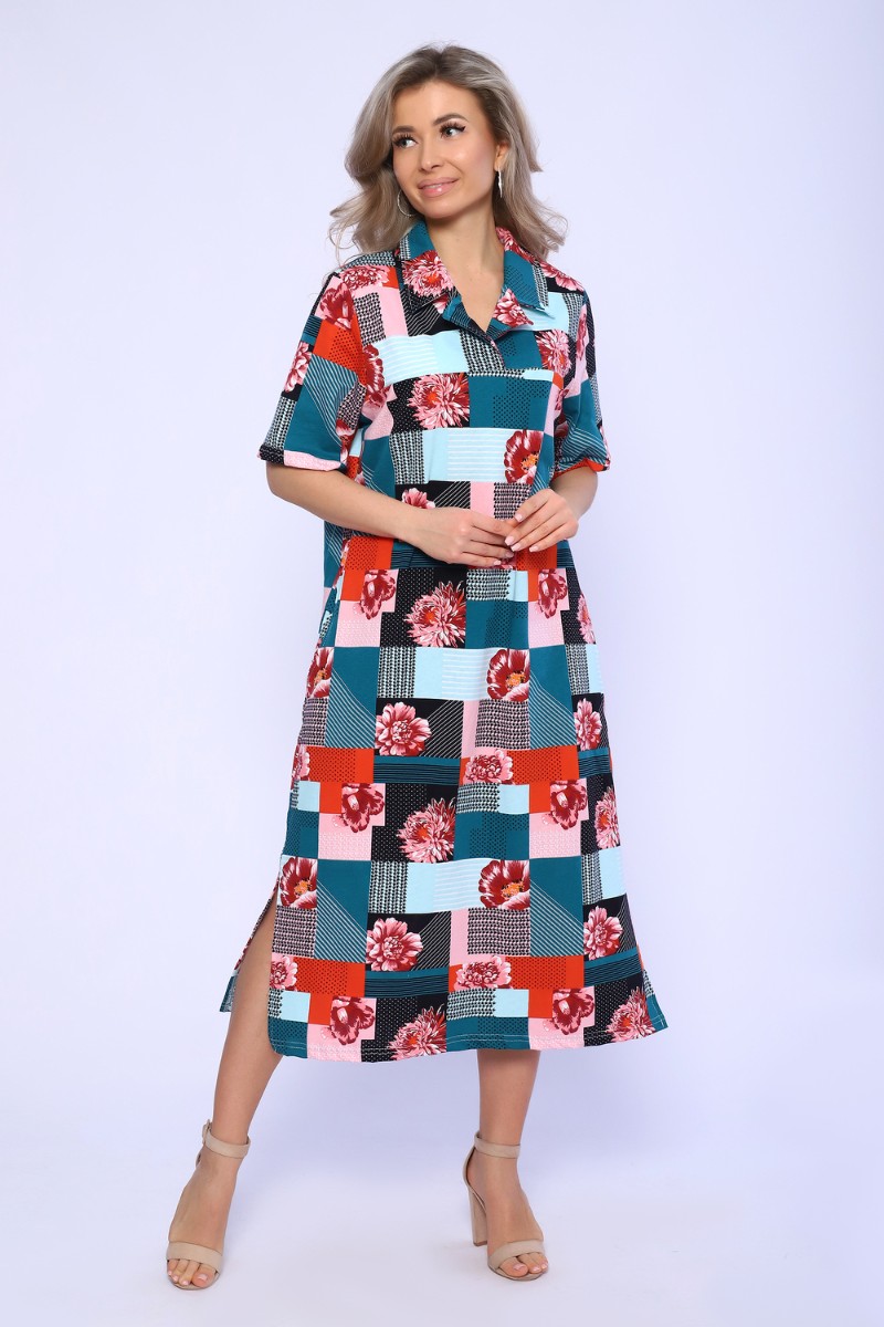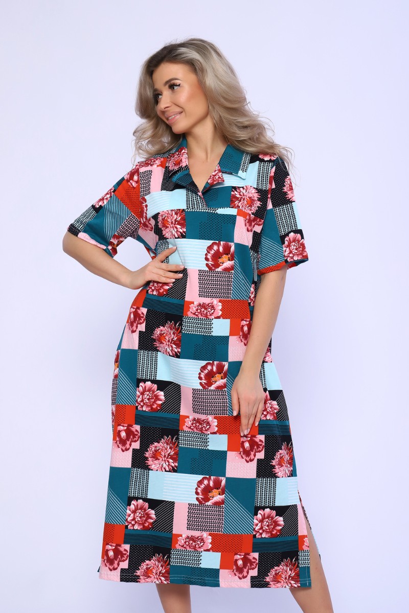 Представляем Вашему вниманию изящное женское платье полуприлегающего силуэта с короткими рукавами и рубашечным воротником. Карманы и разрезы в боковых швах.
