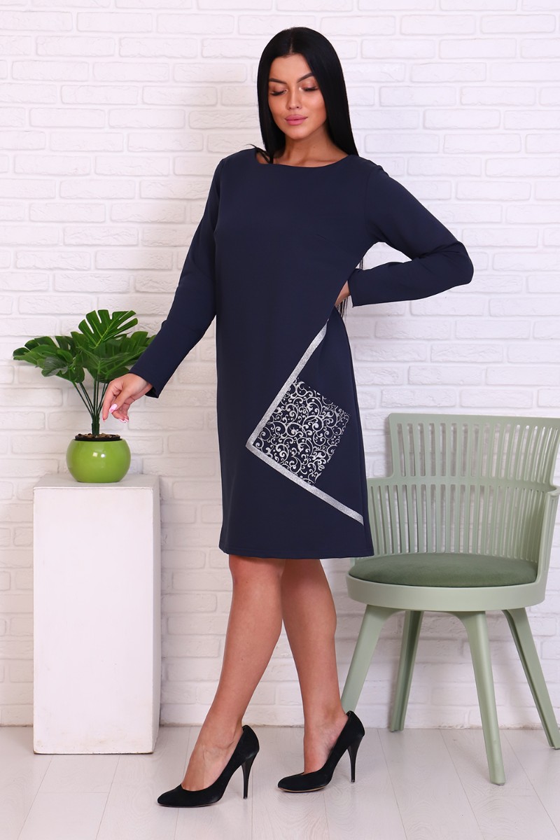 Платье женское №4486 футер с лайкрой 2-х нитка (последний размер) синий 48