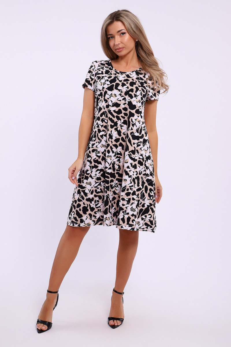 Представляем Вашему вниманию легкое женское платье из хлопковой кулирки. Длина до линии колена, легкий клеш и короткий рукав создают очаровательный образ.