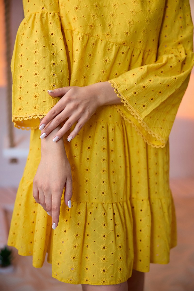 Представляем Вашему вниманию женское платье с длинным рукавом. Расклешенный к низу за счет сборок. Треугольный вырез на полочке.