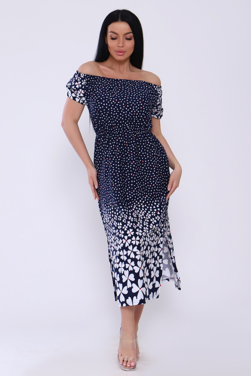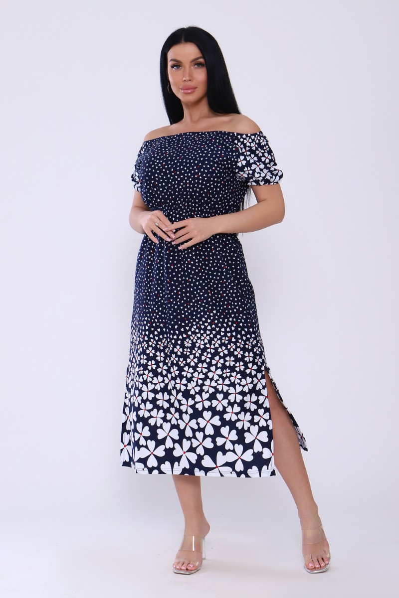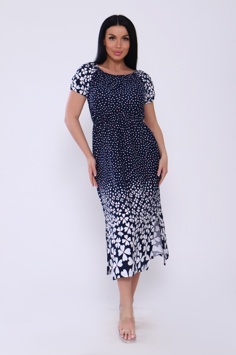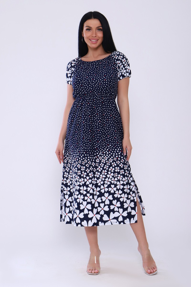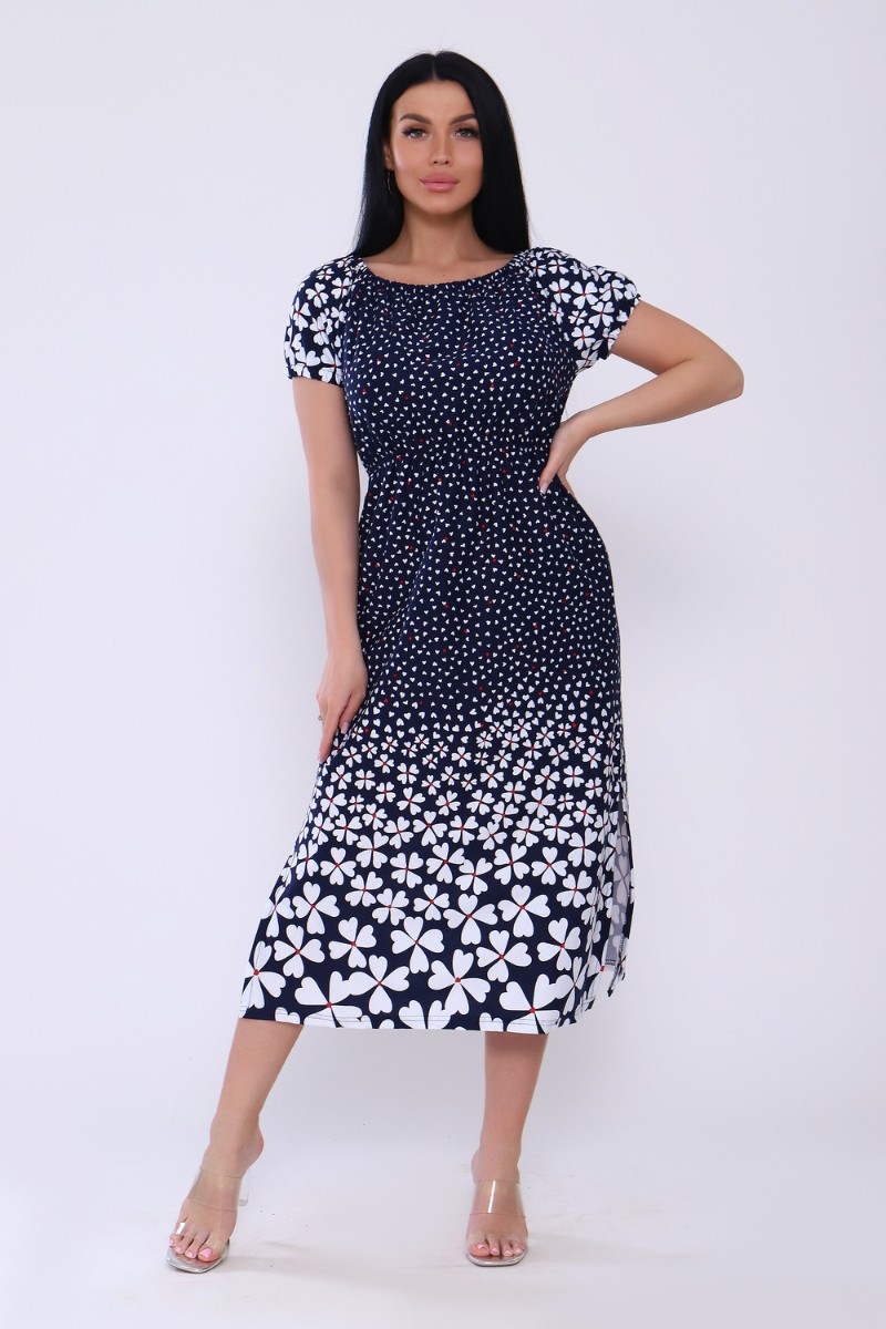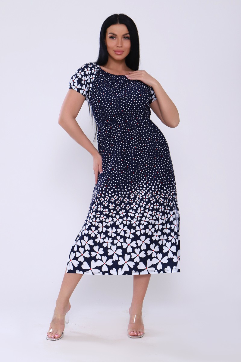 Платье женское №71003 кулирка (последний размер) темно-синий 46,54,56