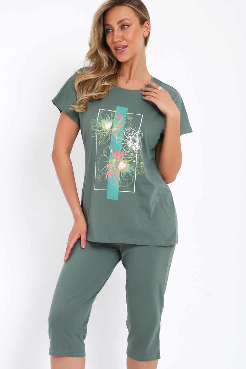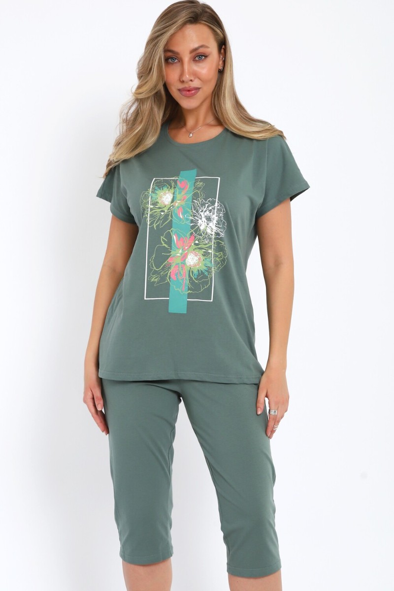 Представляем Вашему вниманию летний костюм двойку для домашнего отдыха и сна, сшитый из 100% хлопка. Футболка свободного кроя, удлиненная, с круглым вырезом горловины и коротким рукавом. Бриджи классической длины, прямого кроя. Мягкий и приятный к телу материал, обладающий высоким качеством, подарит вам настоящий уют на каждый день. Домашний костюм со штанами можно носить дома, на даче или использовать комплект как пижамный. Наш трикотажный костюм подойдет любой моднице. Такую домашнюю одежду для женщин можно использовать для йоги, активного отдыха, походов и прогулок весной и летом. Домашний костюм женский с бриджами с интересным рисунком соответствует моде и отлично подходит для повседневной носки. Домашняя одежда для женщин больших размеров подходит в качестве уличной, домашней и пляжной одежды. Пижама костюм яркого цвета с интересным рисунком соответствует моде и отлично подходит для повседневной носки. Дачный костюмчик больших размеров идеально подходит в качестве домашней одежды. Носите с удовольствием!