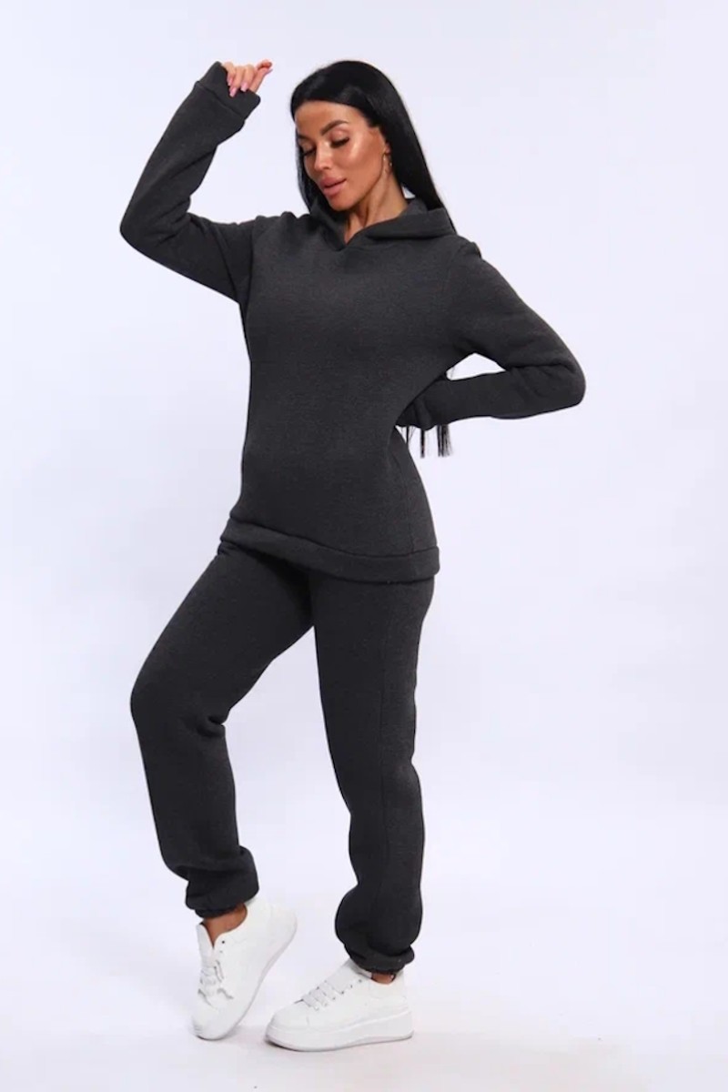 Костюм двойка женский №19130 футер 3-х нитка с начесом (последний размер) антрацит меланж 50