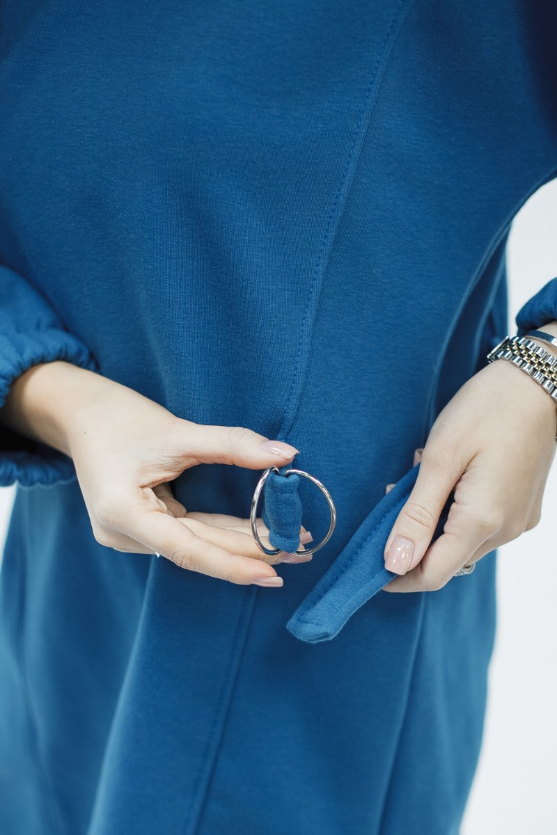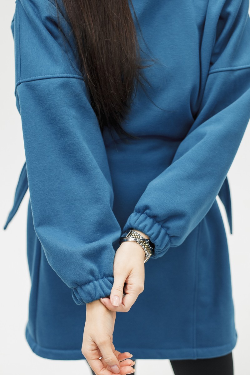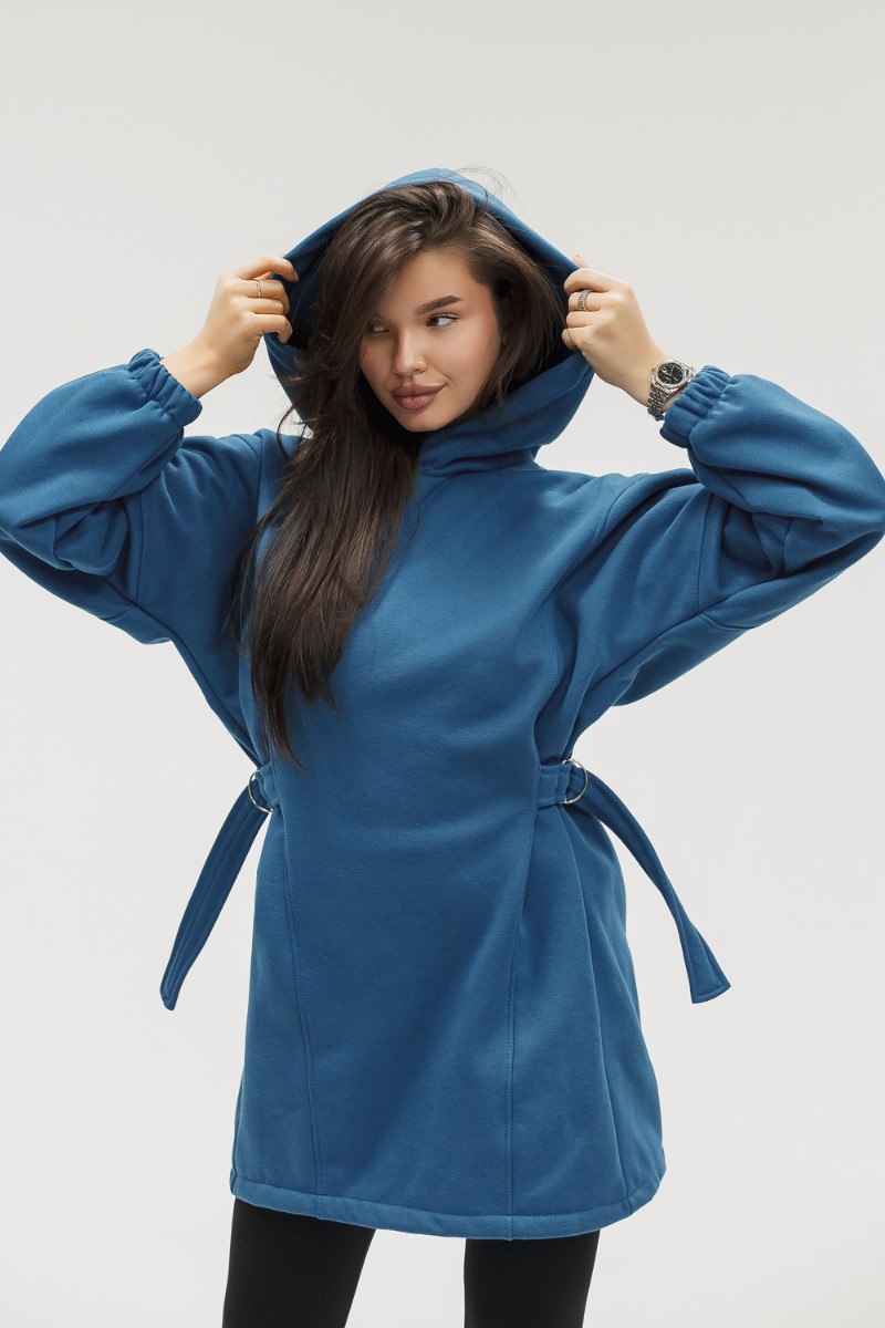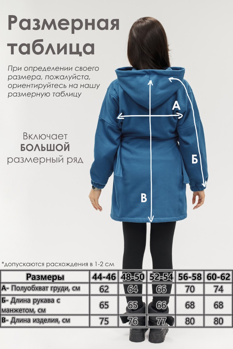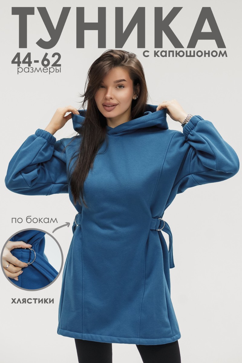 По бокам расположены функциональные хлястики, которые позволяют аккуратно подчеркнуть талию или, при желании, ослабить и завязать как удобно, адаптируя посадку под растущий живот, поэтому модель отлично подходит для беременных. Свободный, удлинённый силуэт делает тунику универсальной. Носите её с джинсами, леггинсами или теплами штанами, а капюшон добавляет практичности и дополнительного уюта в прохладную погоду. Кофта представлена в большом размерном ряде с 44 по 62, продумана под любые и нестандартные фигуры — посадка мягкая, линия плеч естественная, а хлястики дают возможность подчеркнуть форму без дискомфорта.