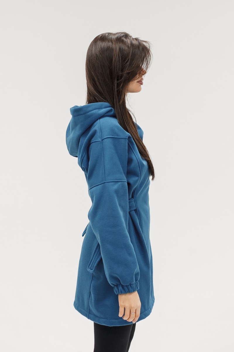 Туника проста в уходе: рекомендуется стирка на деликатном режиме при 30°C, без отбеливателей. Ткань быстро сохнет и долго сохраняет структуру ворса при бережной сушке в расправленном виде. Это практичная и стильная вещь для повседневного гардероба, которая сочетает в себе тепло флиса, удобство капюшона и гибкую регулировку талии, оставаясь комфортной и элегантной на всех этапах жизни, включая период беременности.