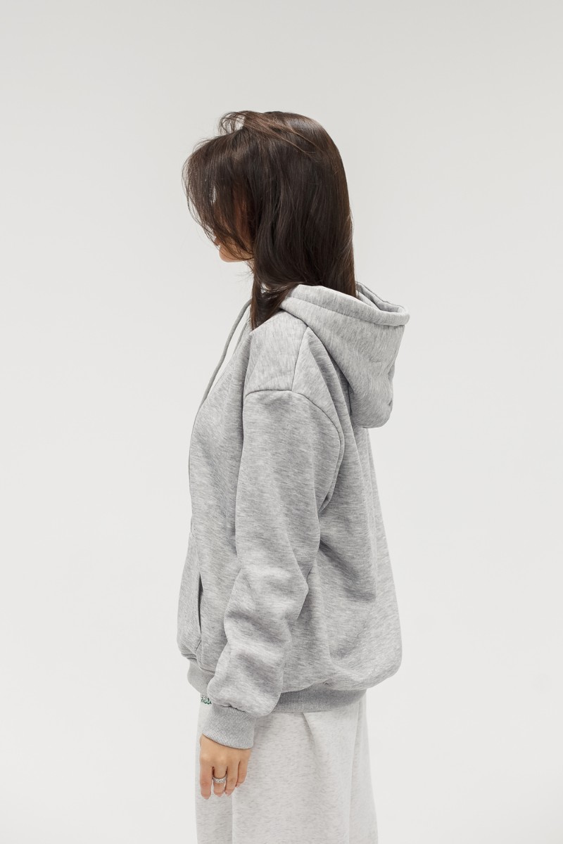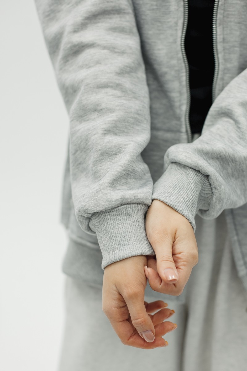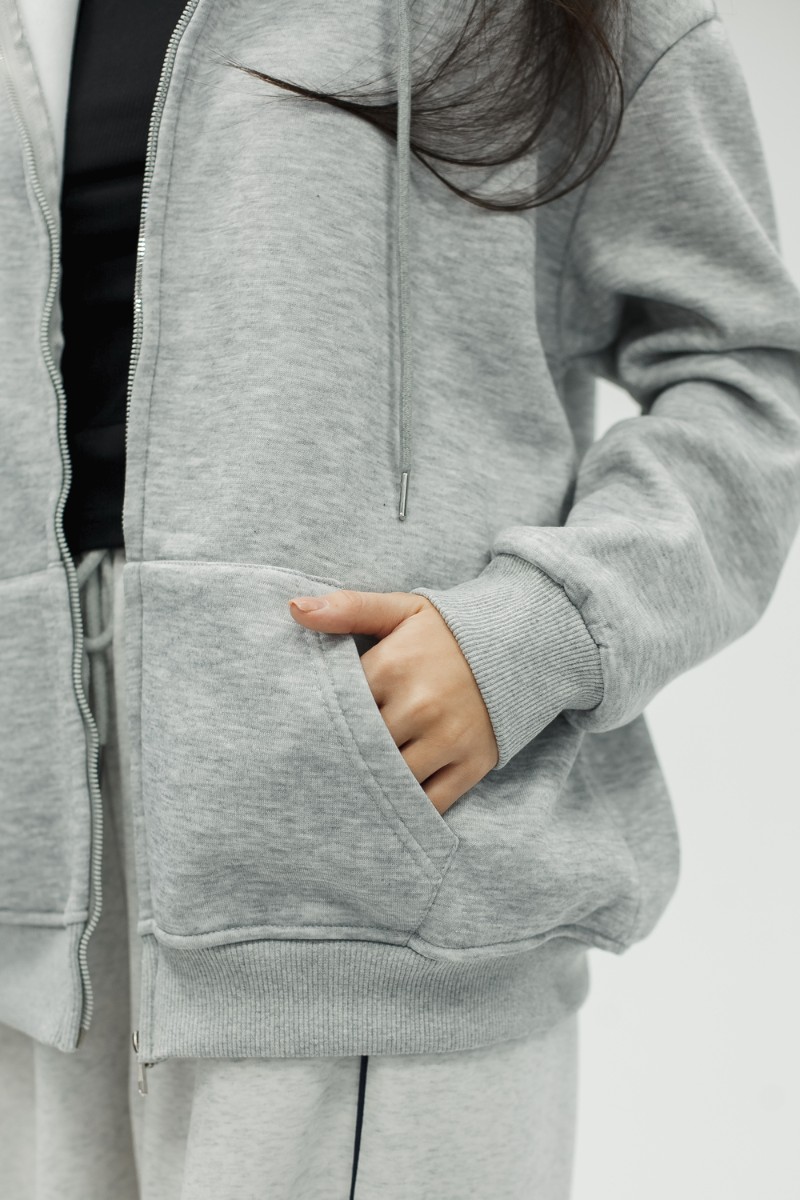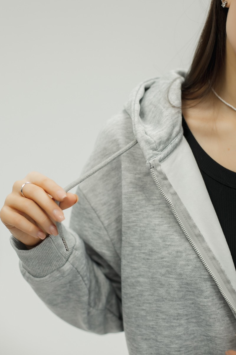 Толстовка на молнии по всей длине позволяет варьировать образ от полностью застёгнутого до свободно расстёгнутого. Вместительные карманы удобно держат руки и необходимые мелочи. Капюшон со шнурком защищает от ветра и подчёркивает спортивно‑городской стиль. Рукава на эластичных манжетах сохраняют тепло и придают аккуратную посадку, при этом свободный силуэт позволяет сочетать худи с джинсами, леггинсами, спортивными штанами или использовать как тёплую базу под короткую куртку или жилет для многослойности.