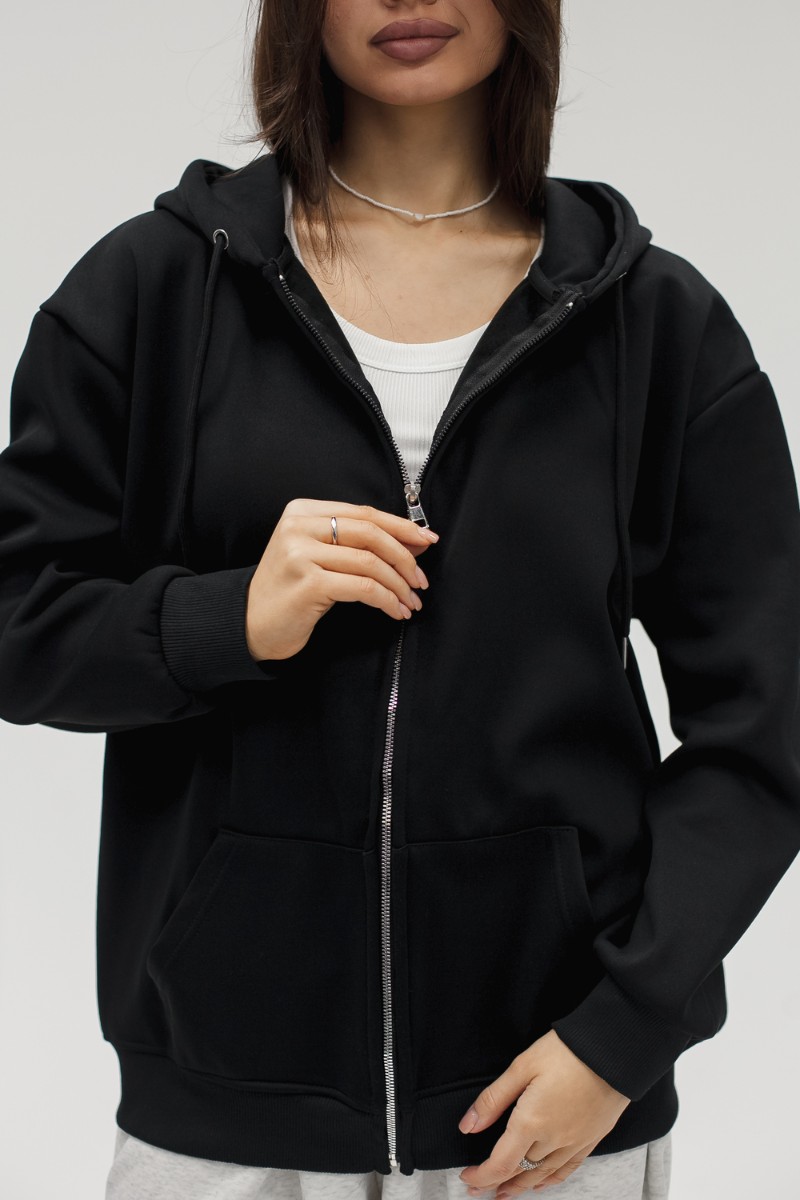 Худи женское №057559 футер на флисе (р-ры: 42-56) черный