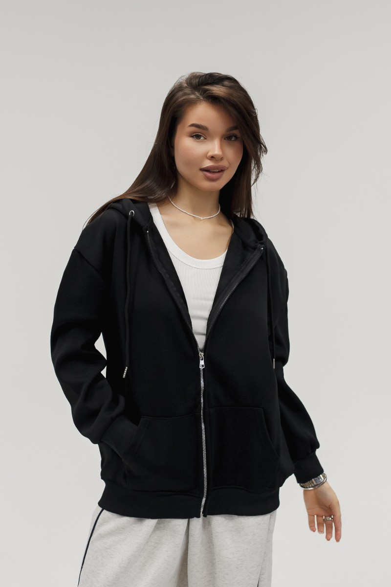 Представляем Вашему вниманию мягкое женское худи на молнии в актуальном оверсайз‑крое — идеальный выбор для тех, кто ценит комфорт и практичность. Кофта с плотным внутренним начесом (меховой, очень приятный на ощупь) сохраняет тепло и дарит уют в прохладную погоду.