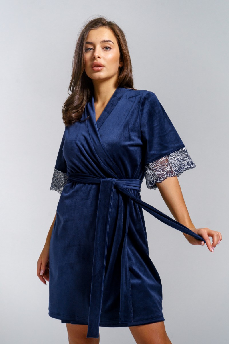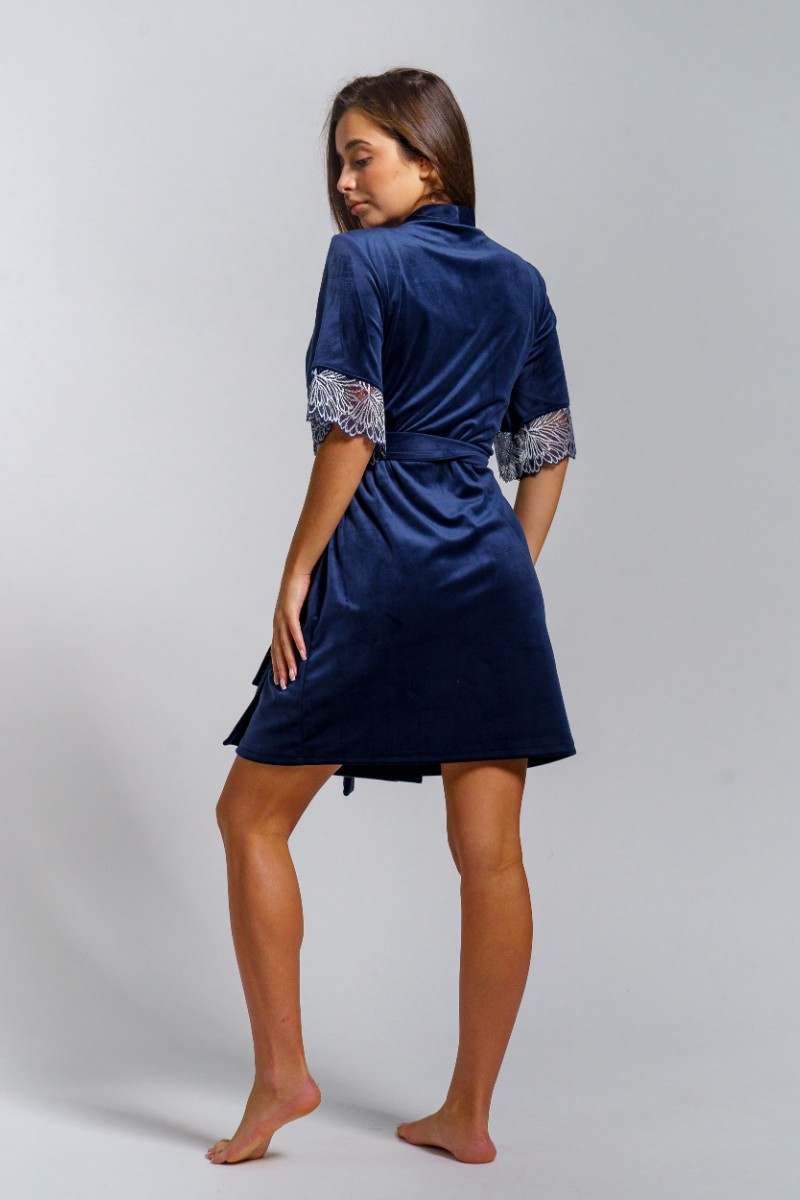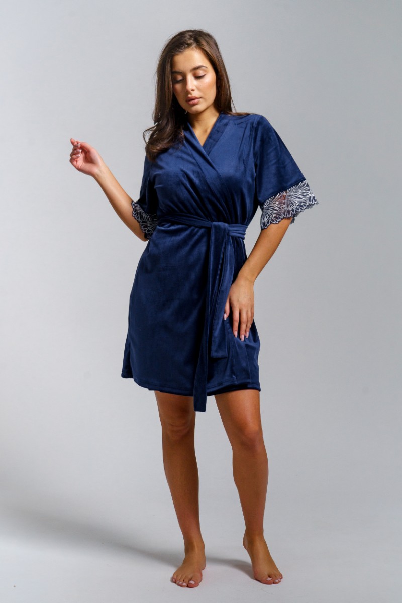 Пеньюар двойка женский "Сказка" вискоза+велюр (р-ры: 42-56) индиго