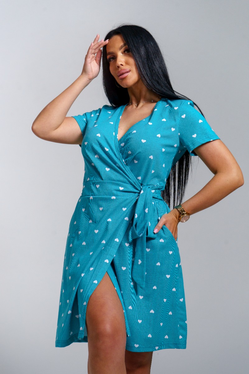 Представляем Вашему вниманию короткий женский халат из кулирки – идеальный выбор для комфорта и стиля! Представляем вашему вниманию наш короткий женский халат из кулирки, выполненный из 100% хлопка. Этот халат сочетает в себе легкость, удобство и элегантный дизайн, что делает его незаменимым элементом домашнего гардероба. Преимущества нашего халата: Натуральные материалы: Халат изготовлен из высококачественного хлопка, который обеспечивает отличную воздухопроницаемость и комфорт в любое время года. Удобный крой: Модель на запах с поясом позволяет легко регулировать посадку, подчеркивая достоинства фигуры. Практичные карманы: Два вместительных кармана – идеальное решение для хранения мелочей, таких как телефон или мелкие аксессуары. Стильный дизайн: Короткая длина и современный фасон делают этот халат не только удобным, но и стильным. Не упустите возможность предложить своим клиентам этот незаменимый элемент домашнего гардероба!