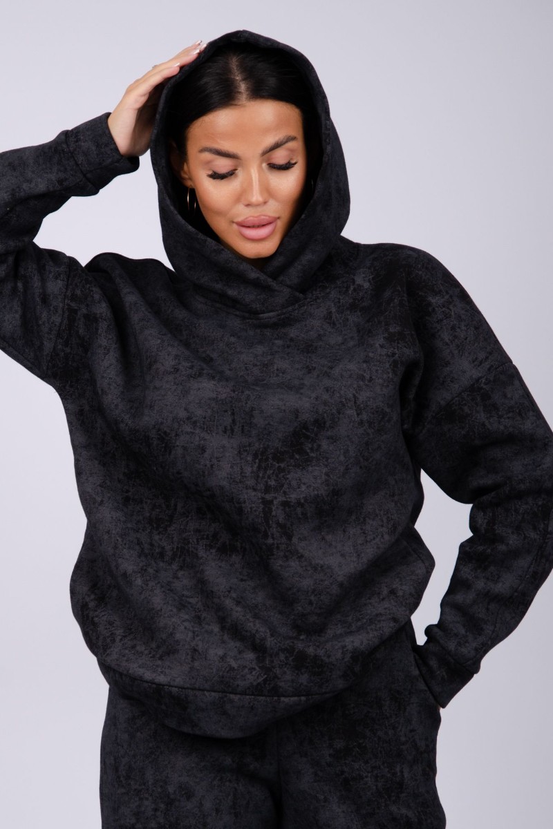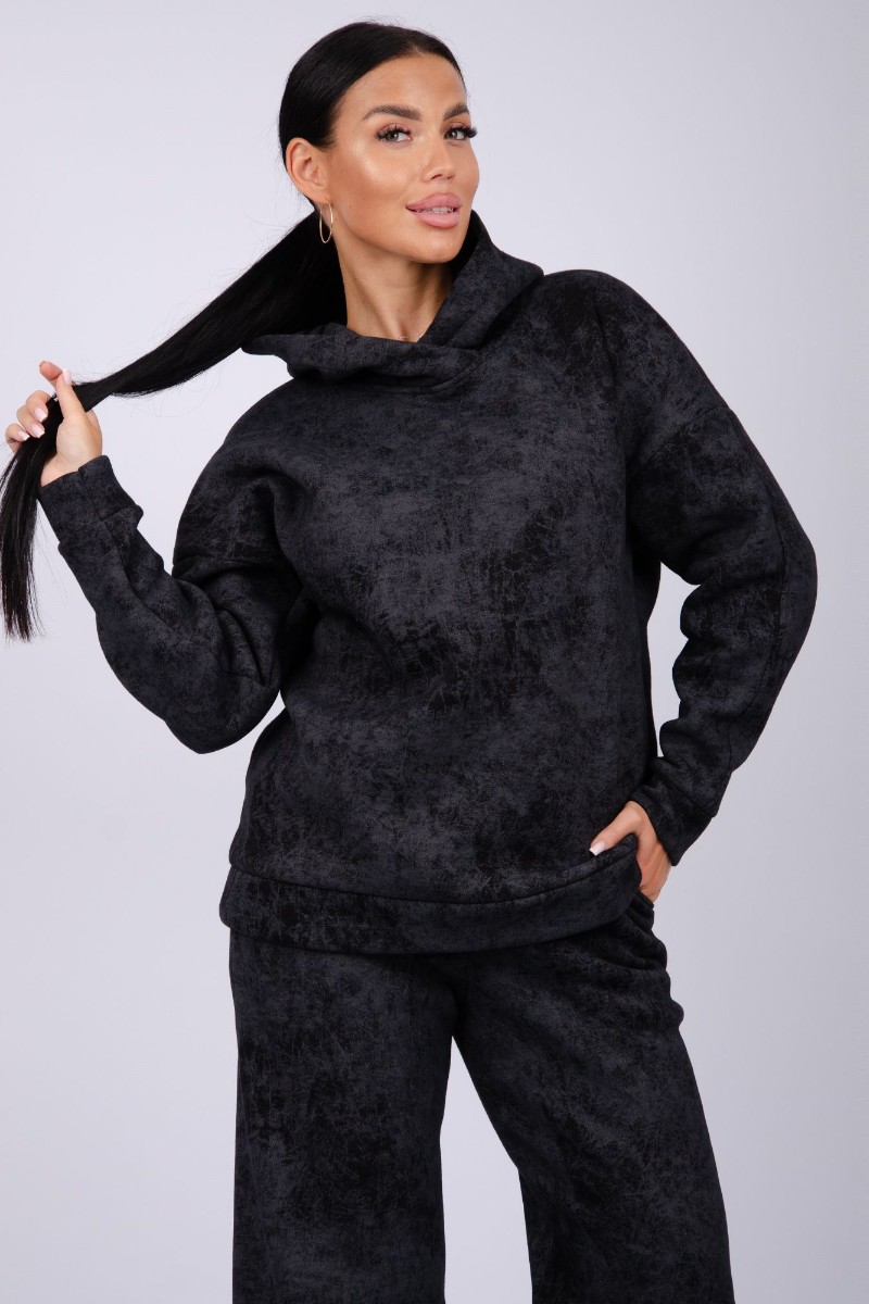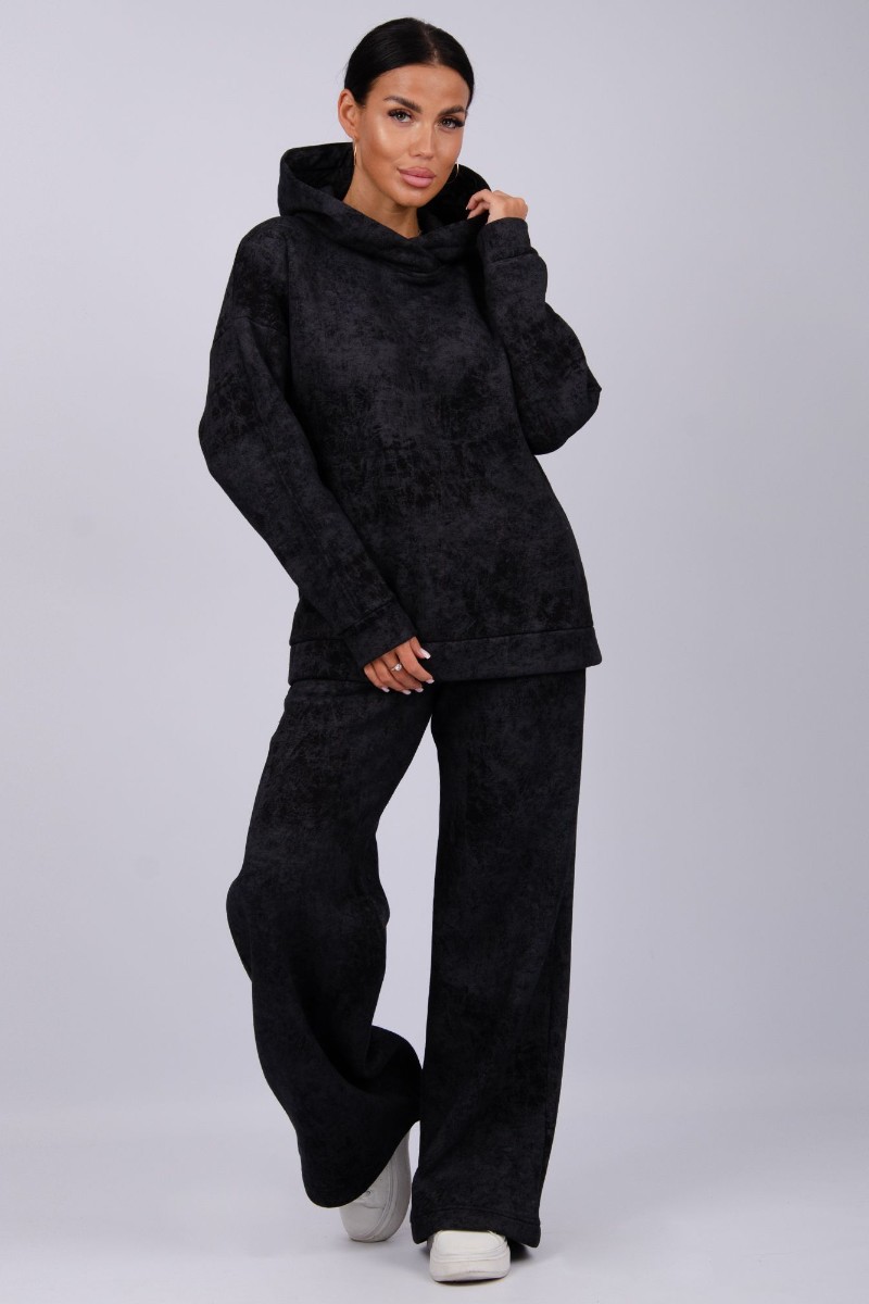 Представляем Вашему вниманию стильный женский костюм двойку, сшитый из приятного телу, дышащего футера 3-х нитки с начесом. Однотонный комплект состоит из брюк и толстовки с капюшоном, свободного силуэта. В нём Вы будете чувствовать себя комфортно и уверенно.