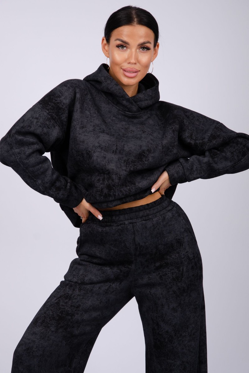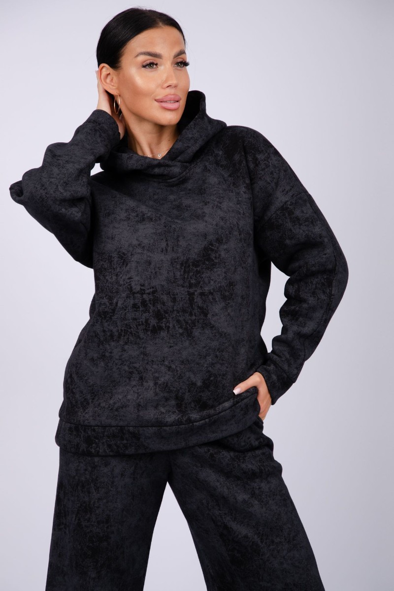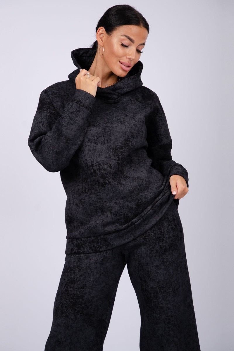 Костюм двойка женский "Винтаж" футер 3-х нитка с начесом (р-ры: 42-52) черный