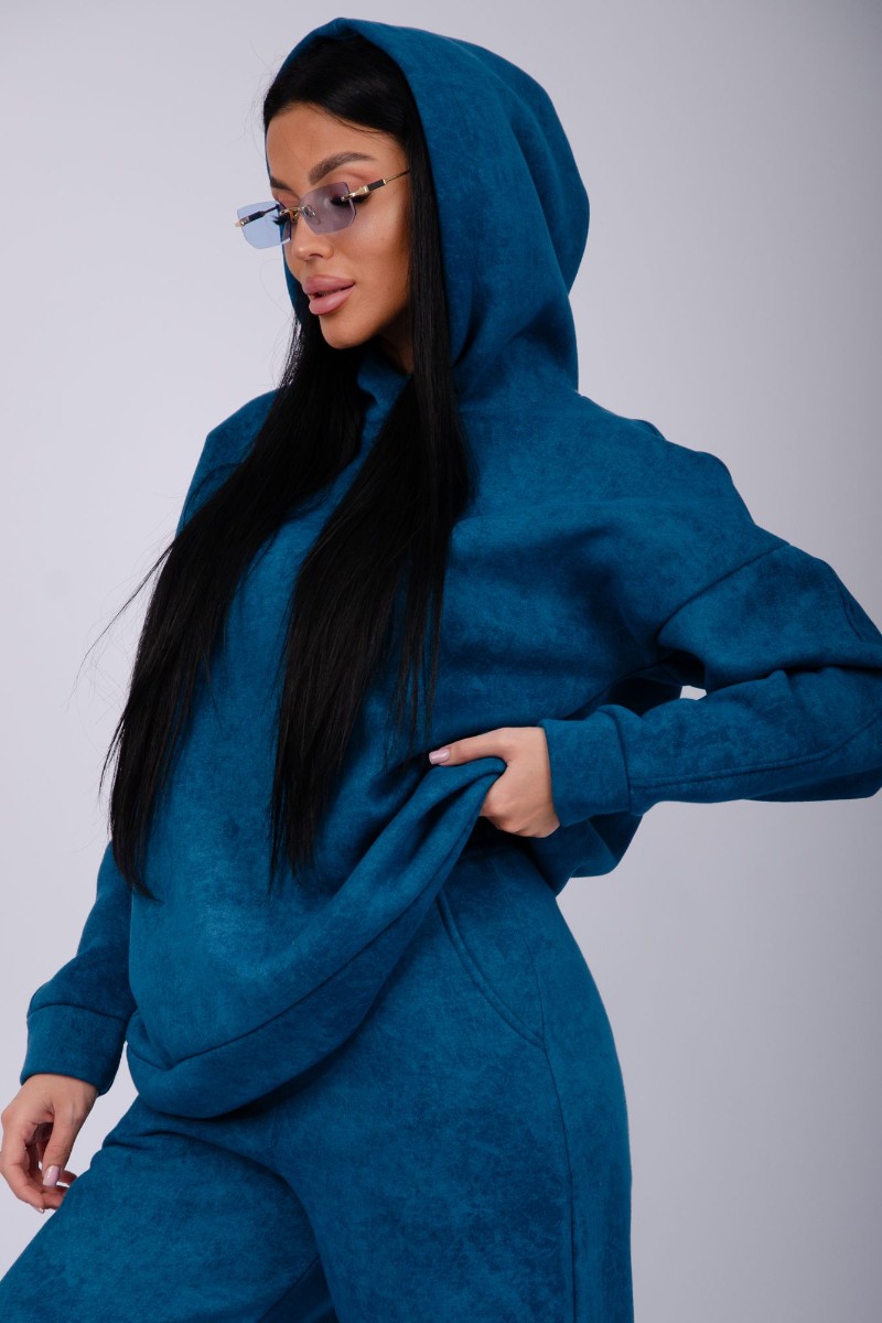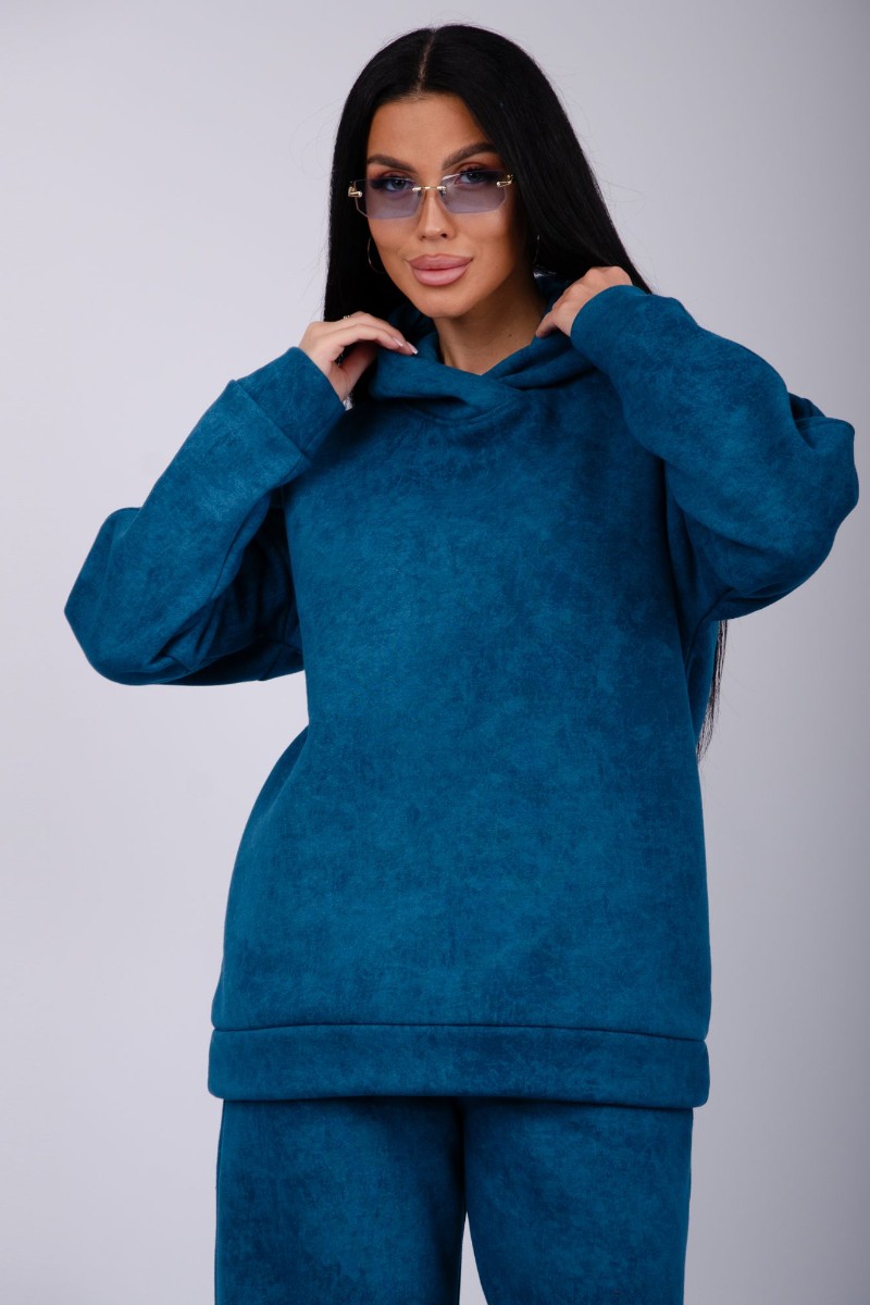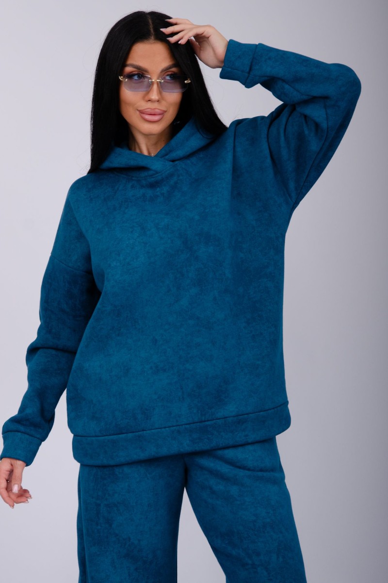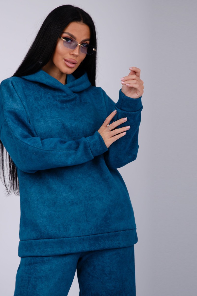 Представляем Вашему вниманию стильный женский костюм двойку, сшитый из приятного телу, дышащего футера 3-х нитки с начесом. Однотонный комплект состоит из брюк и толстовки с капюшоном, свободного силуэта. В нём Вы будете чувствовать себя комфортно и уверенно.