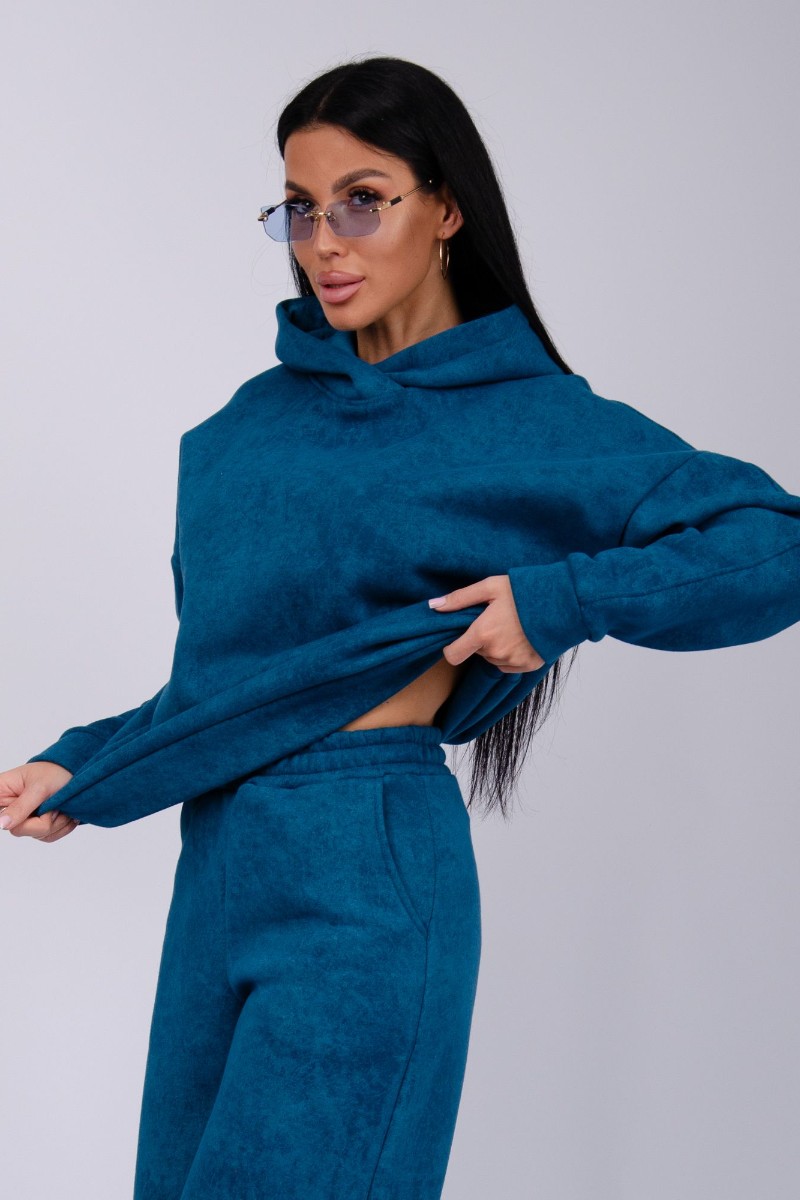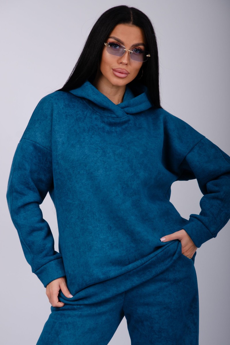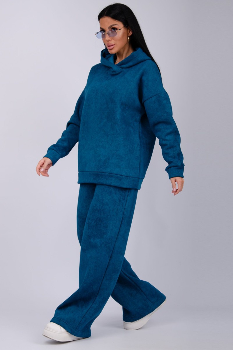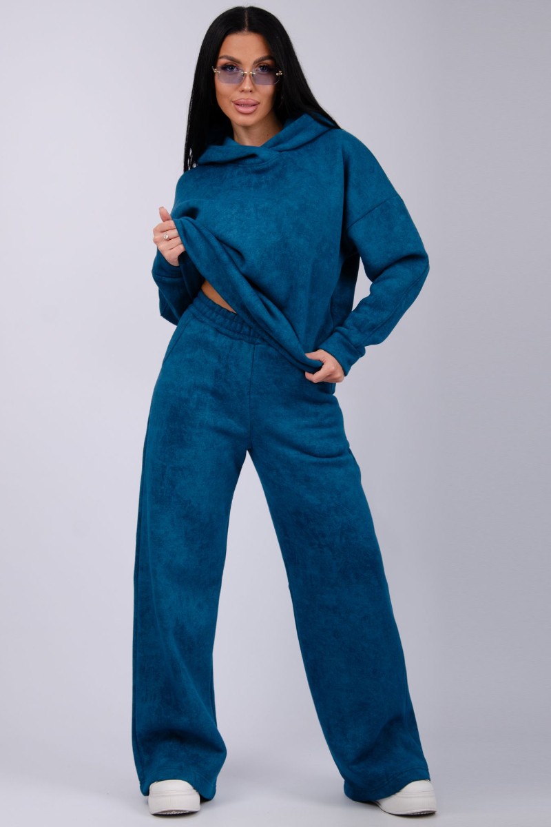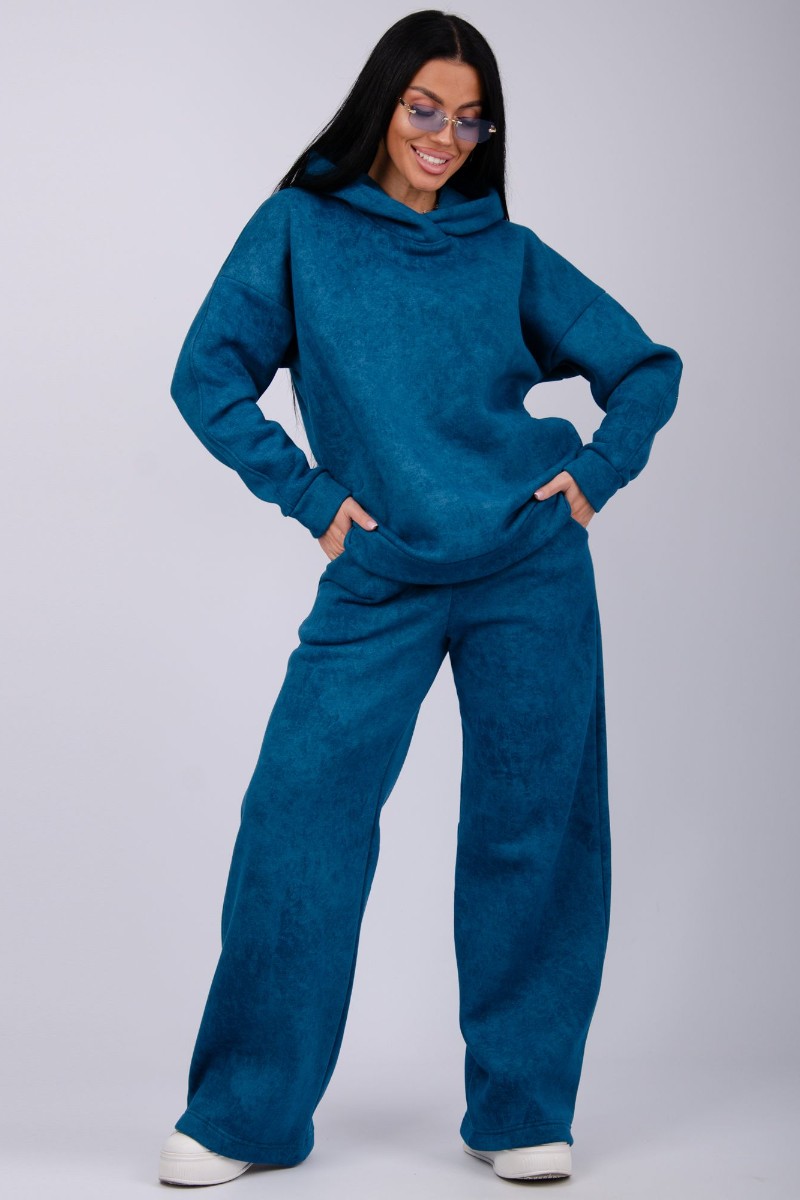 Представляем Вашему вниманию стильный женский костюм двойку, сшитый из приятного телу, дышащего футера 3-х нитки с начесом. Однотонный комплект состоит из брюк и толстовки с капюшоном, свободного силуэта. В нём Вы будете чувствовать себя комфортно и уверенно.