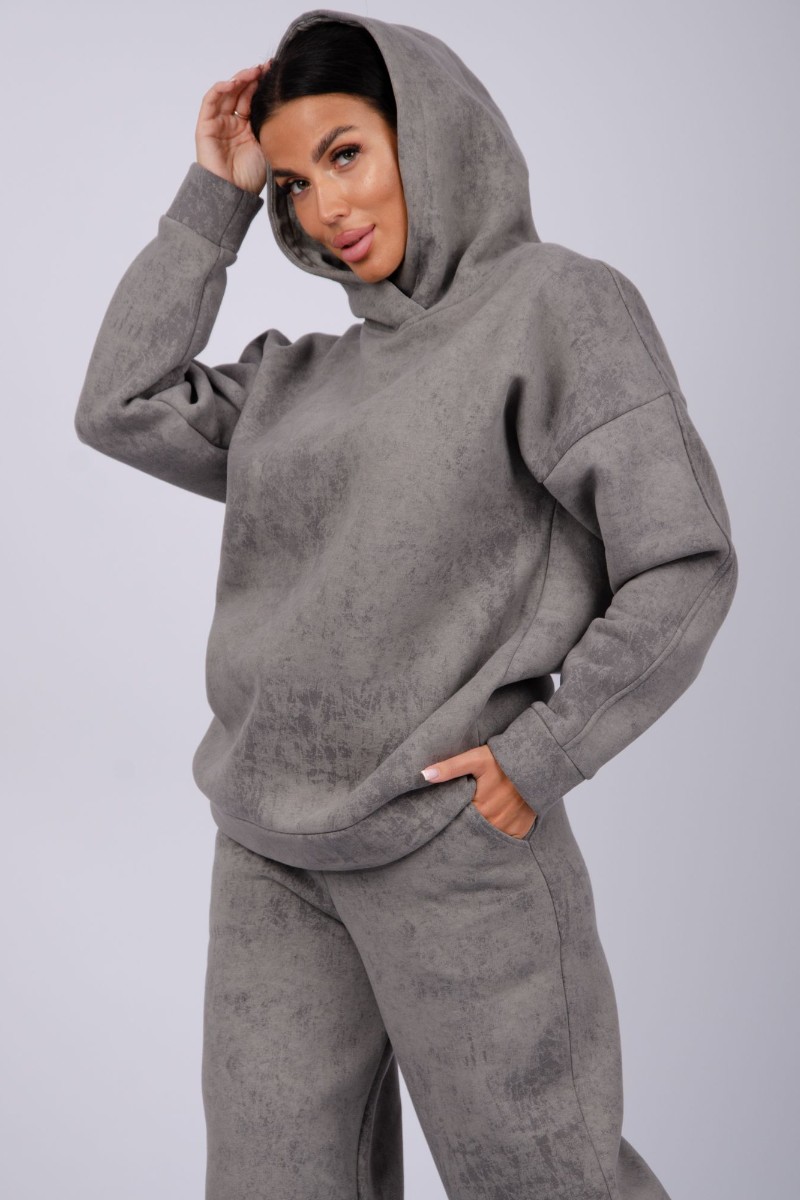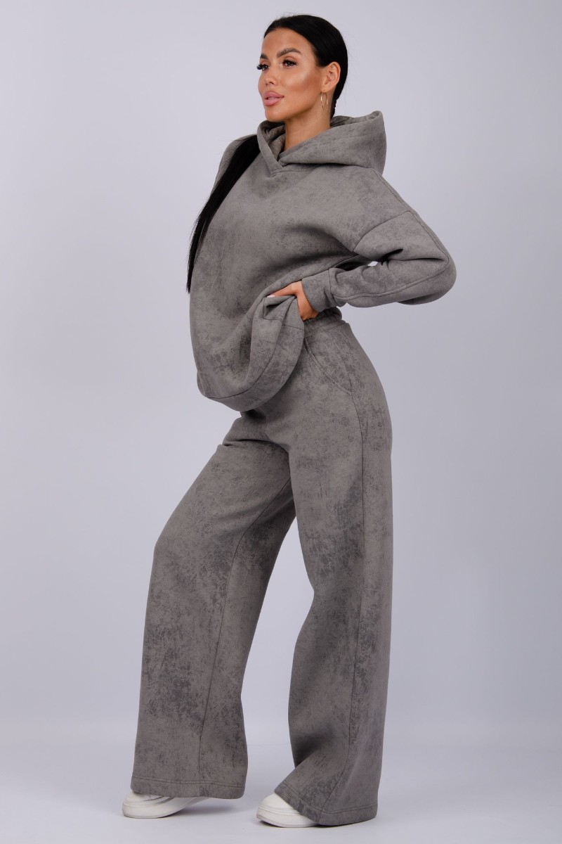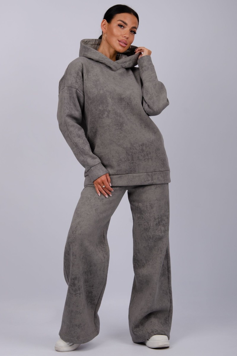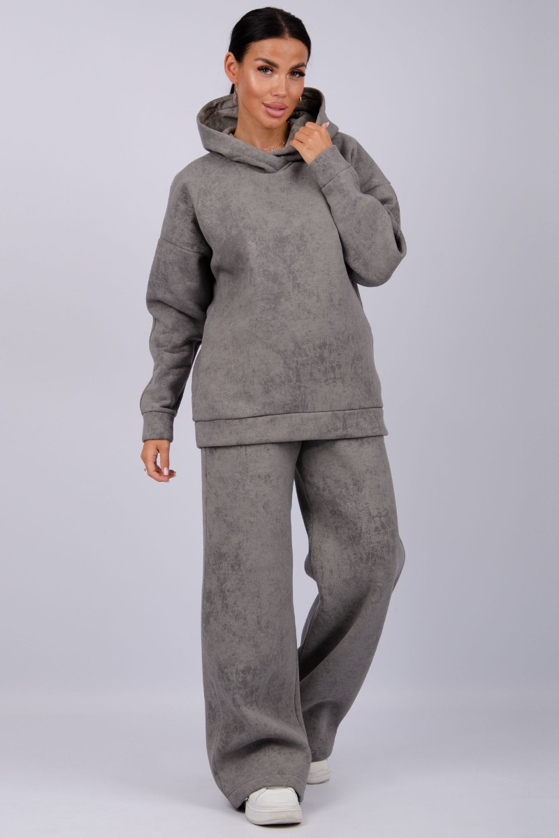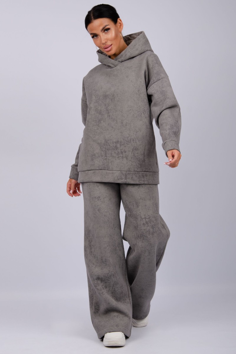 Представляем Вашему вниманию стильный женский костюм двойку, сшитый из приятного телу, дышащего футера 3-х нитки с начесом. Однотонный комплект состоит из брюк и толстовки с капюшоном, свободного силуэта. В нём Вы будете чувствовать себя комфортно и уверенно.