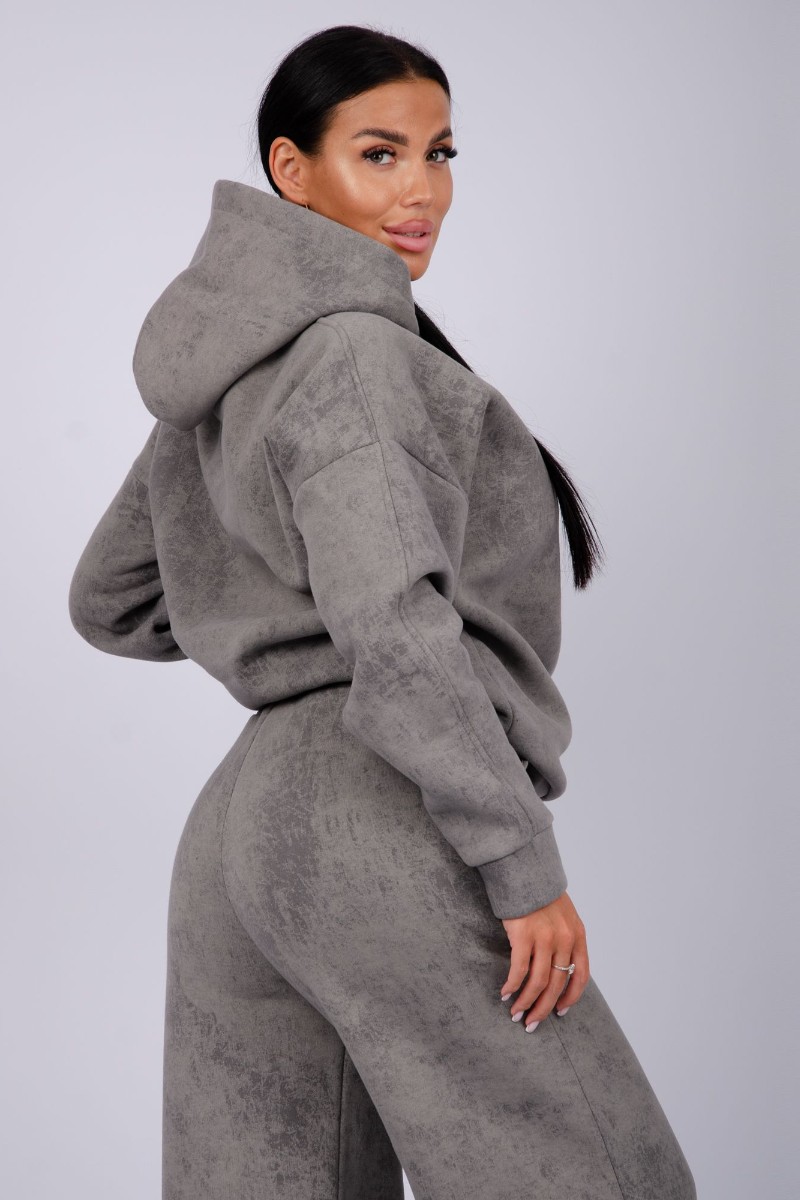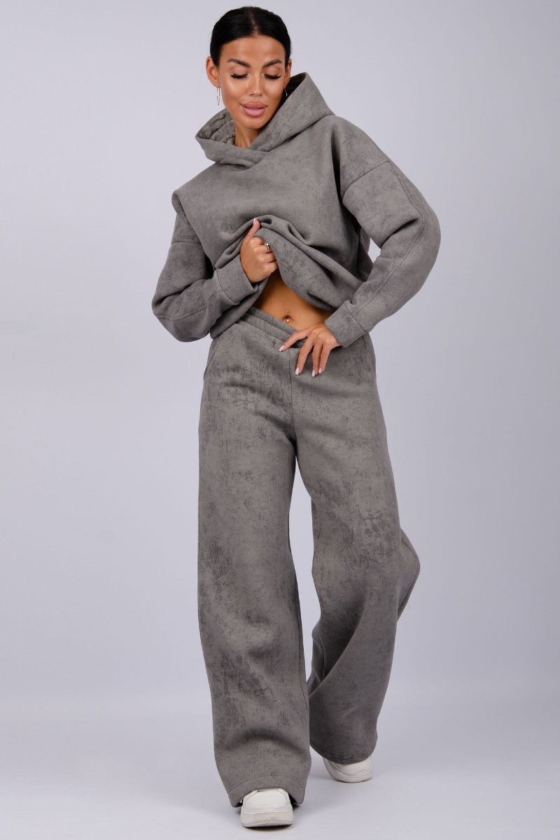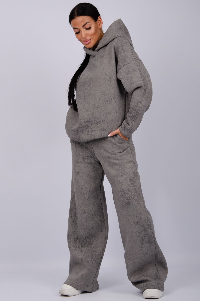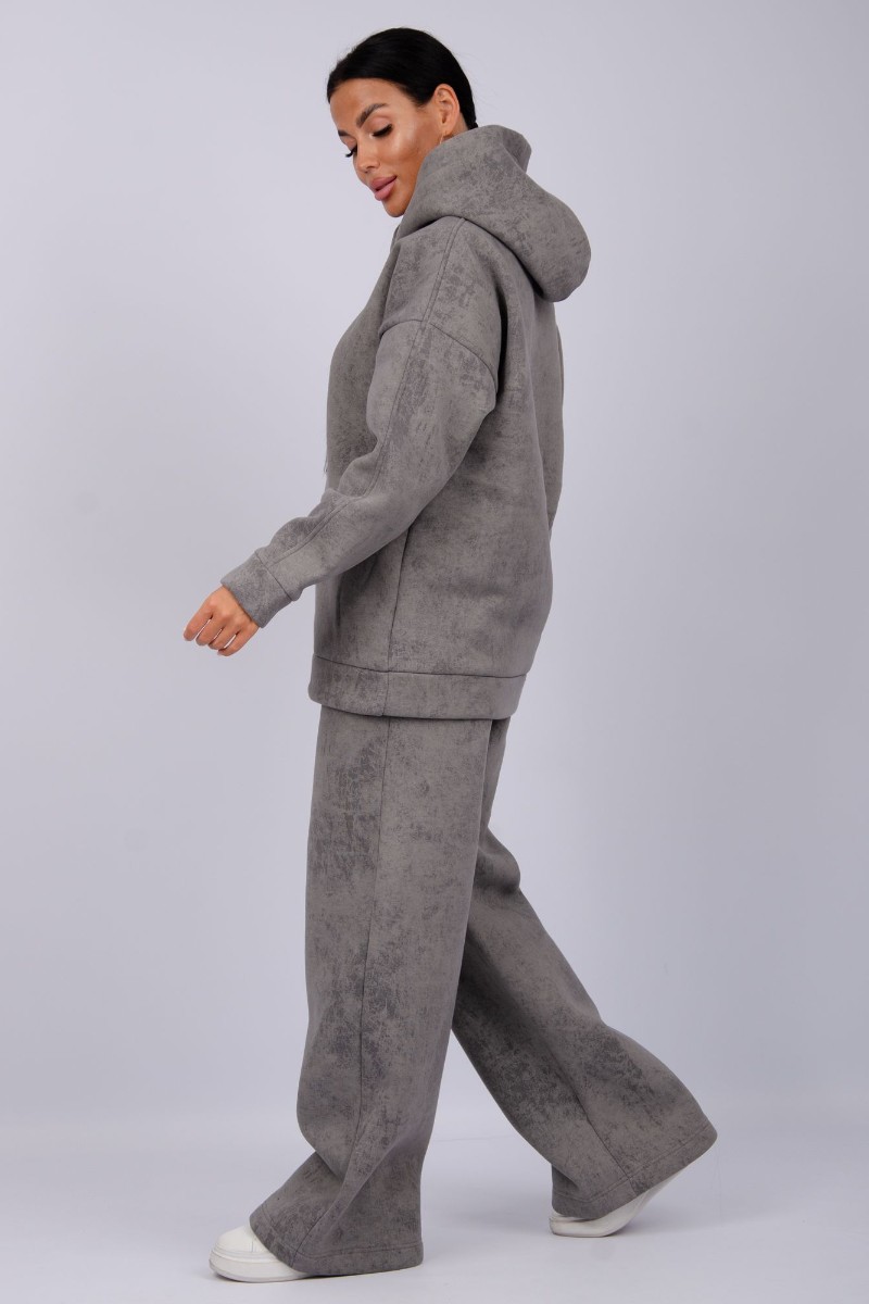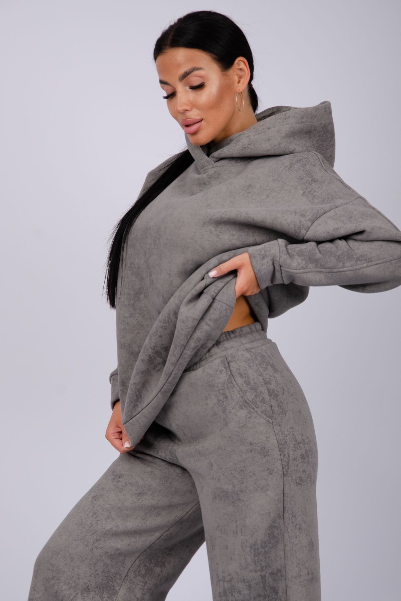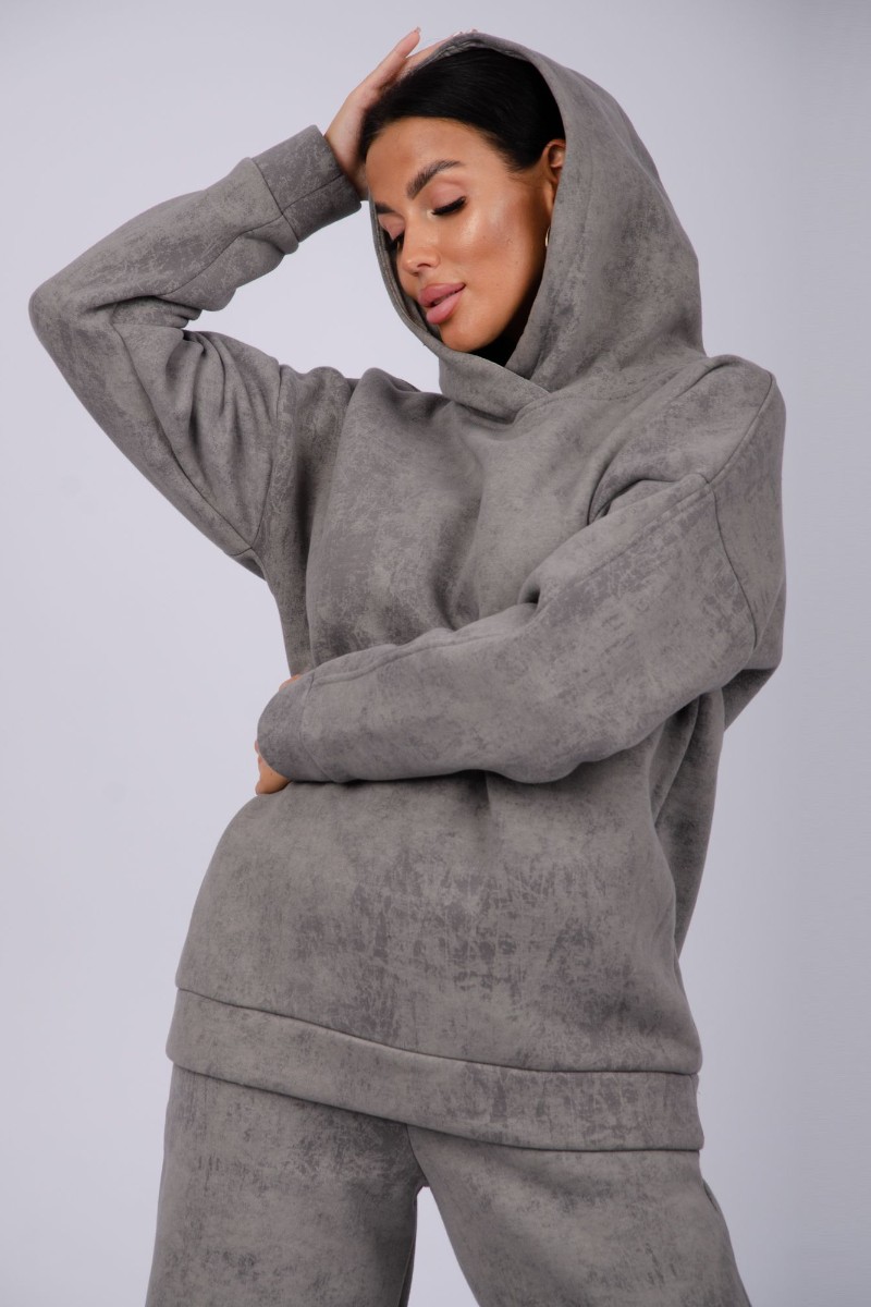 Представляем Вашему вниманию стильный женский костюм двойку, сшитый из приятного телу, дышащего футера 3-х нитки с начесом. Однотонный комплект состоит из брюк и толстовки с капюшоном, свободного силуэта. В нём Вы будете чувствовать себя комфортно и уверенно.