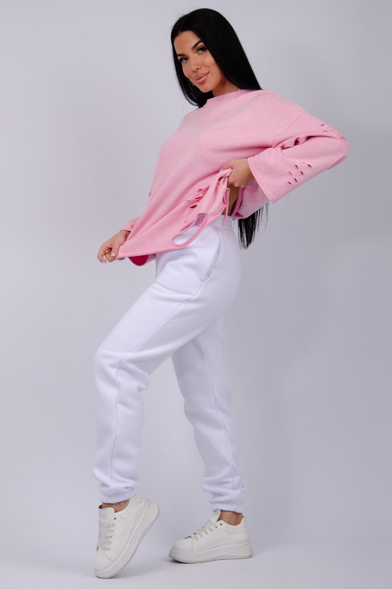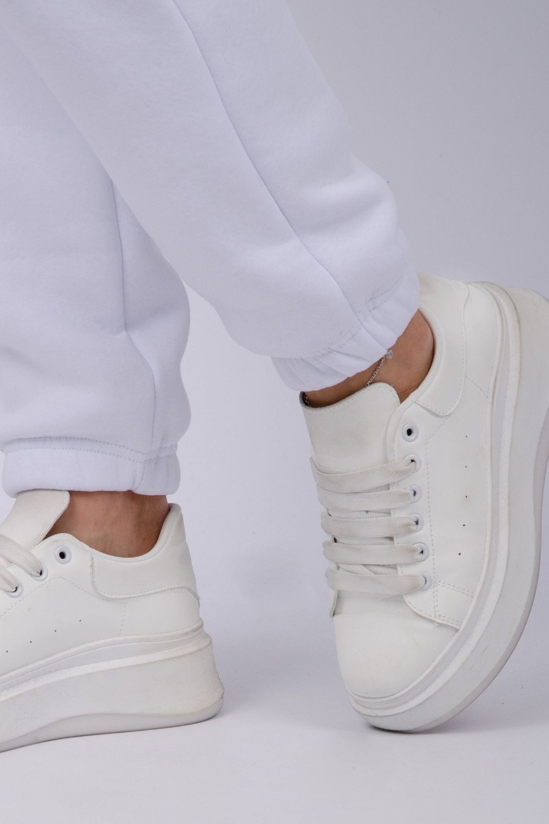 Джоггеры женские "Мистерия" футер 3-х нитка с начесом (р-ры: 44-54) белый