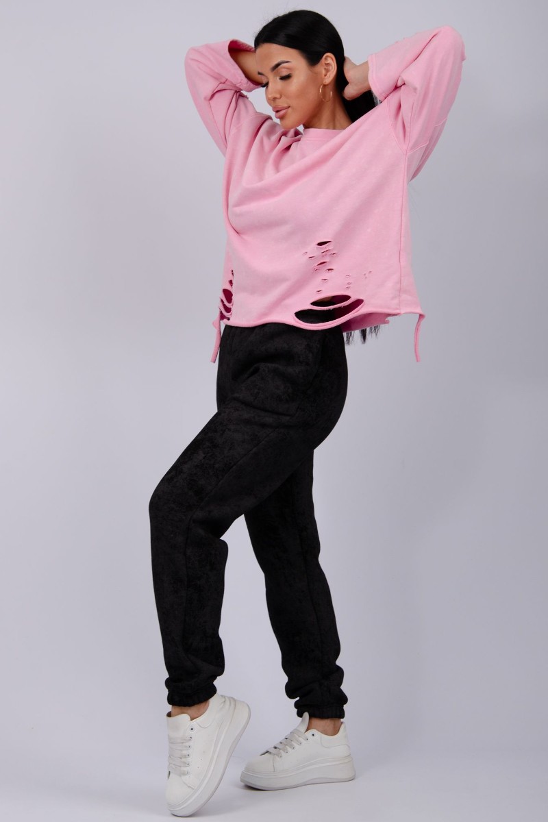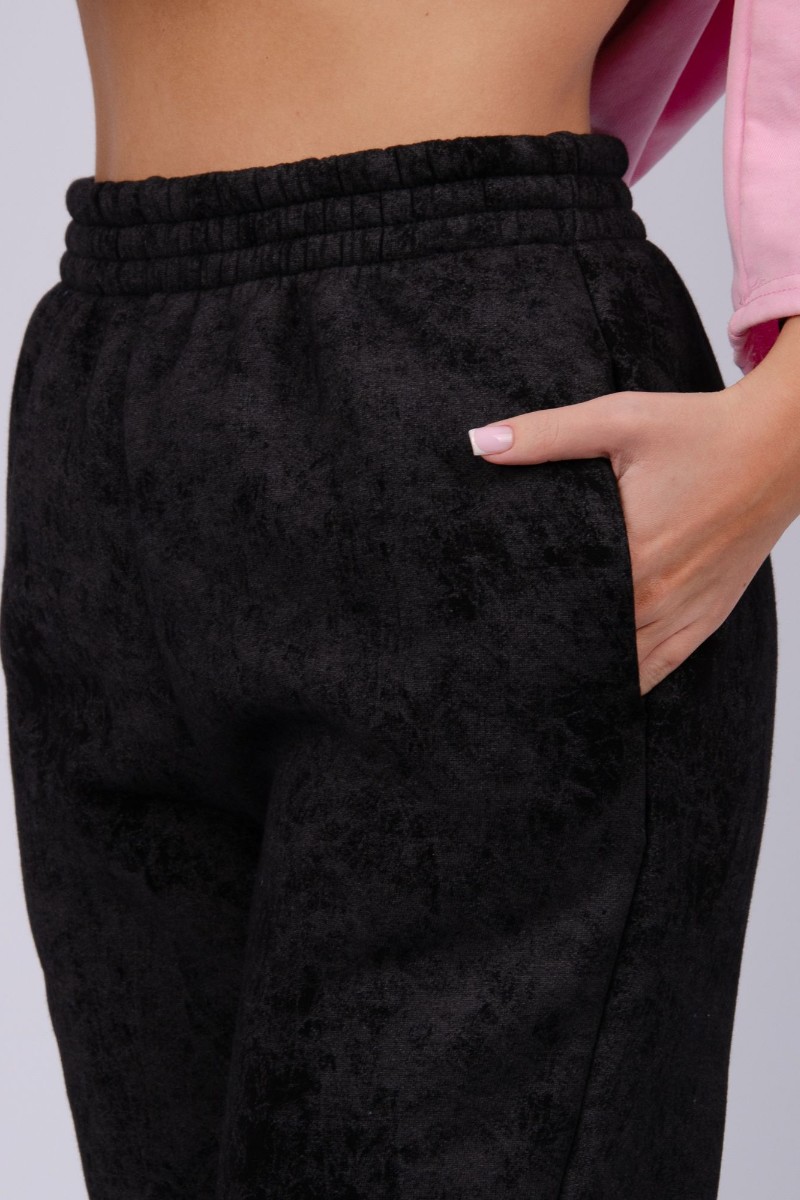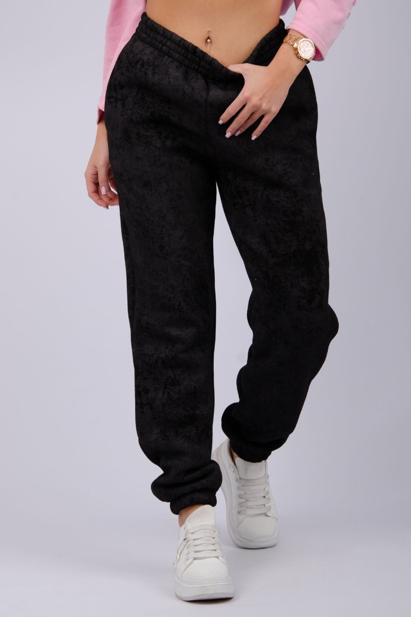 Джоггеры женские "Мистерия 8" футер 3-х нитка с начесом (р-ры: 44-54) черный