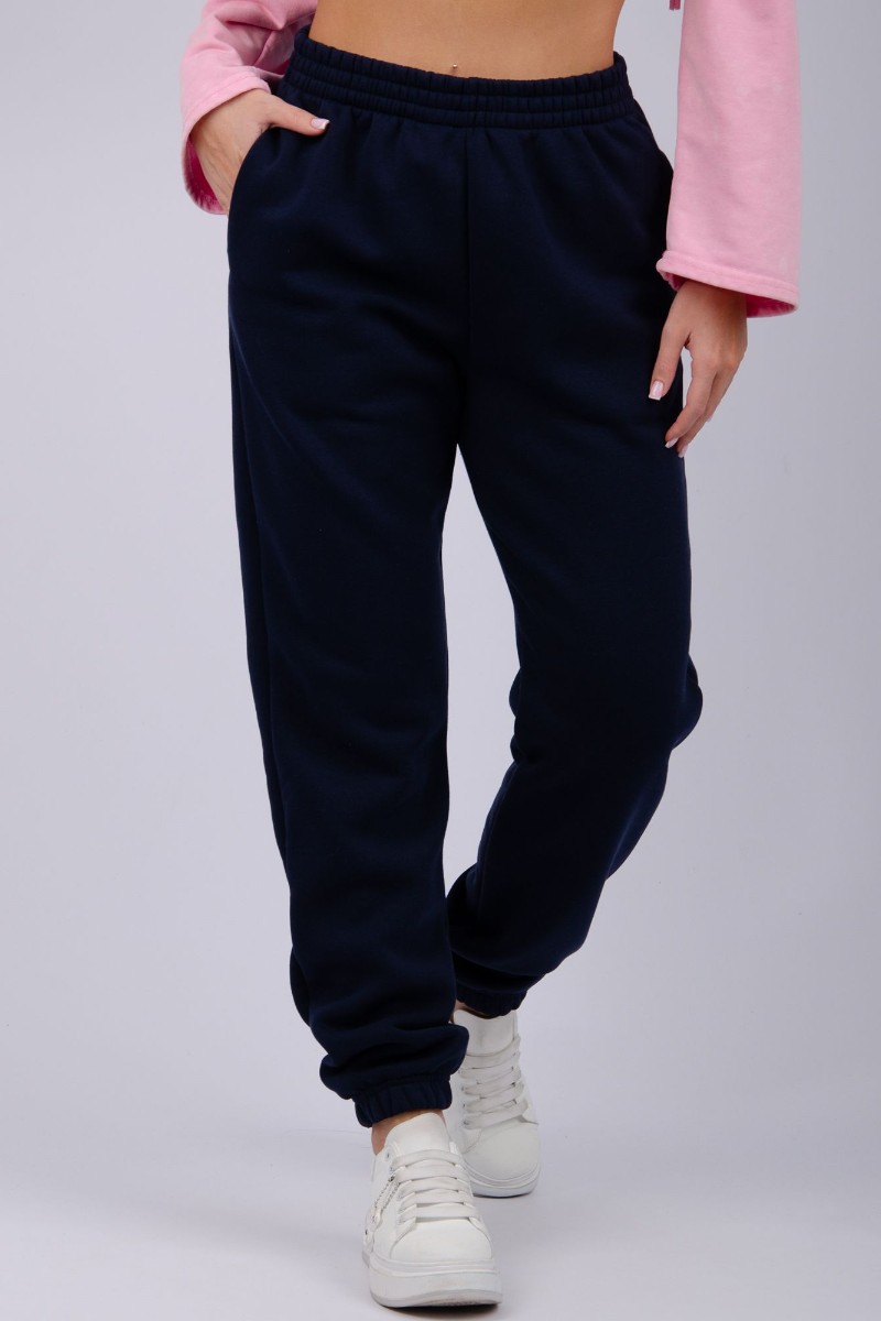 Джоггеры женские "Мистерия 15" футер 3-х нитка с начесом (р-ры: 44-54) темно-синий