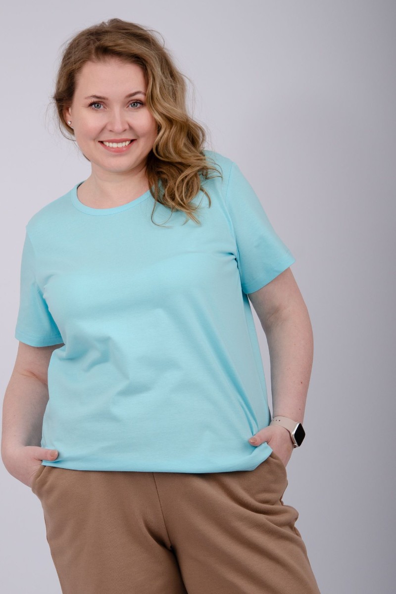 Футболка женская "Карусель 2" кулирка (р-ры: 50-60) бирюза