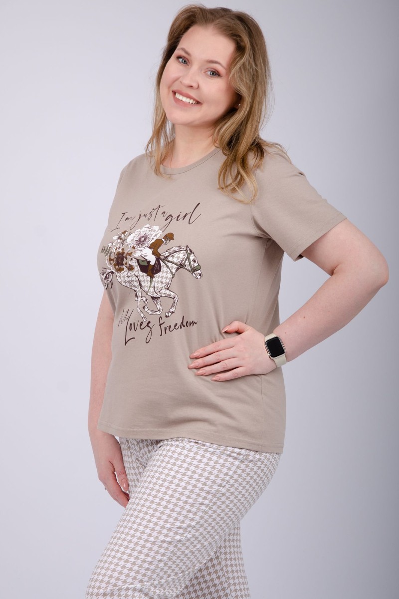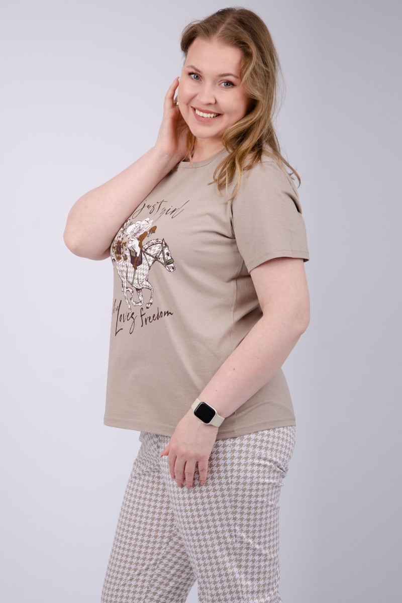 Представляем Вашему вниманию легкую женскую пижаму, сшитую из натуральной, приятной телу кулирки - мягкий хлопок, позволяющий коже дышать. Комплект обеспечит полную свободу движений в повседневной носке. В ней Ваш сон будет максимально приятным и расслабляющим.