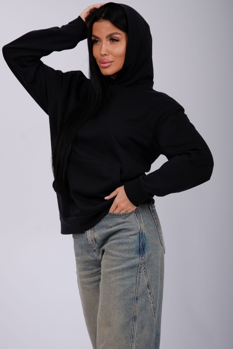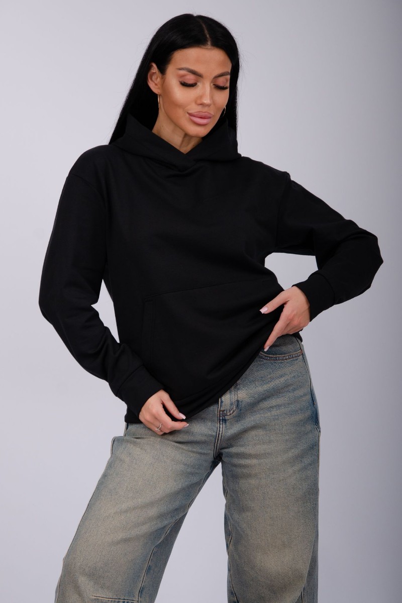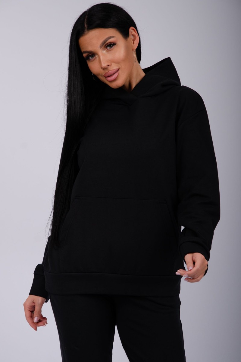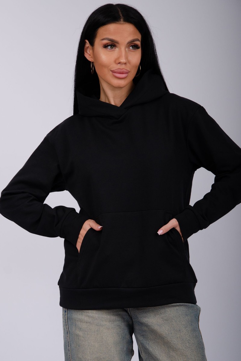 Худи женское "Ханна" футер 2-х нитка с начесом (р-ры: 44-56) черный