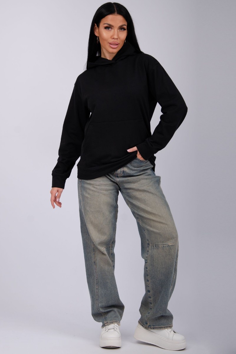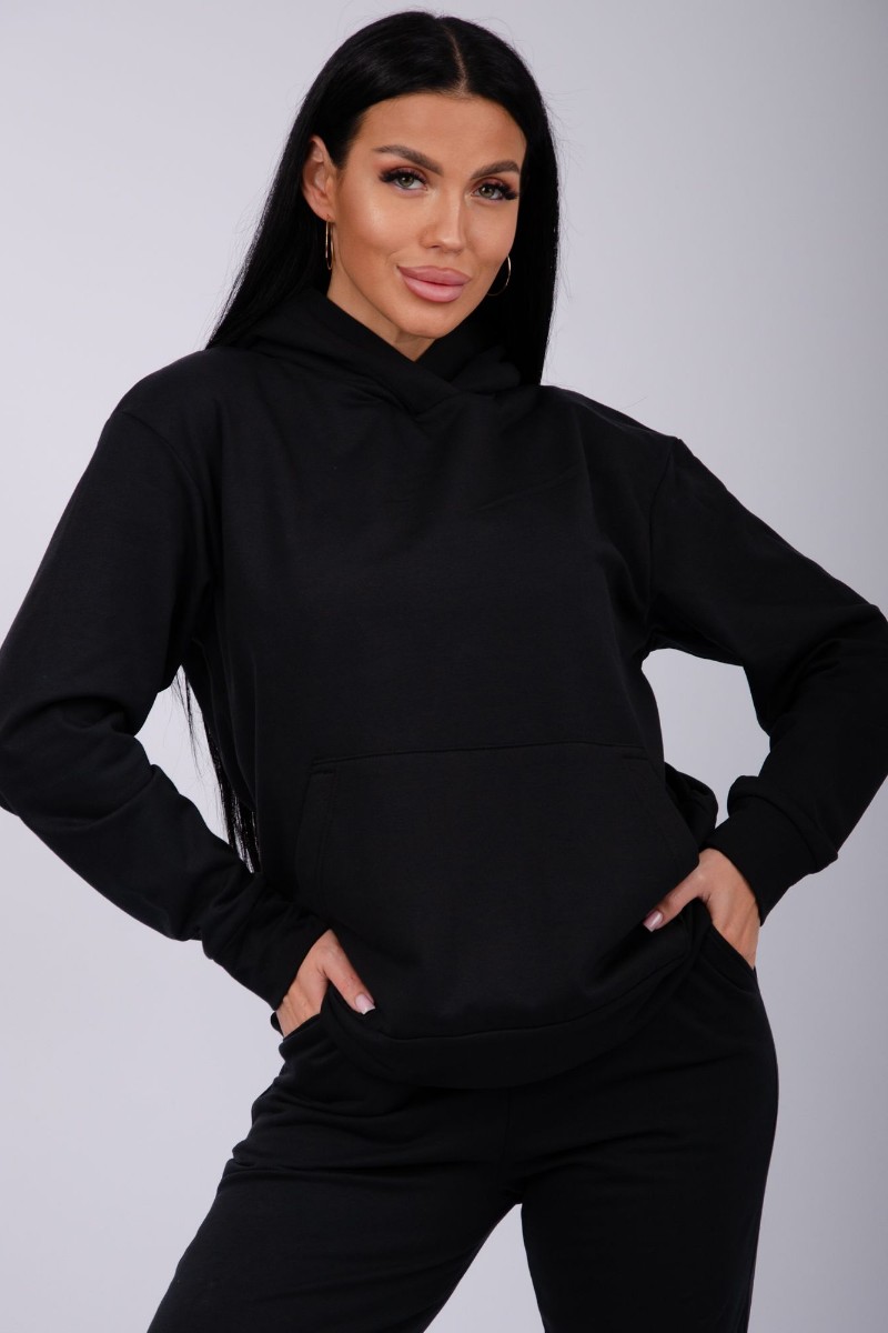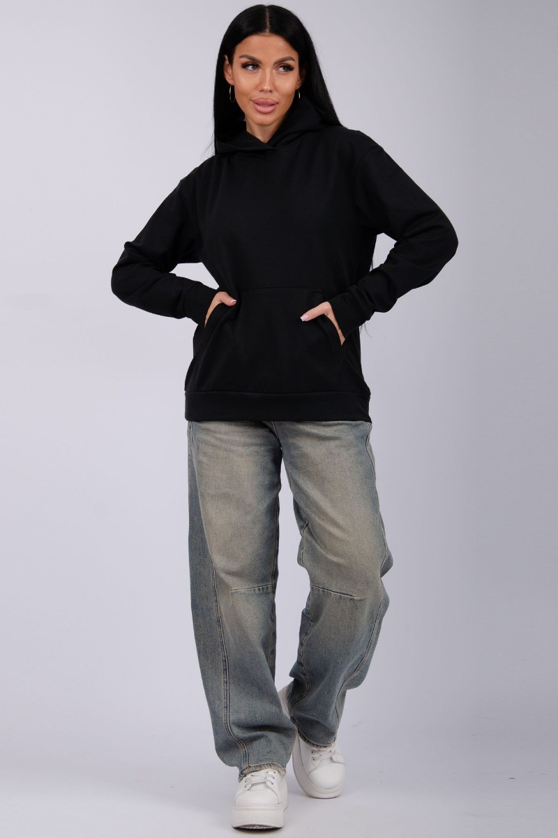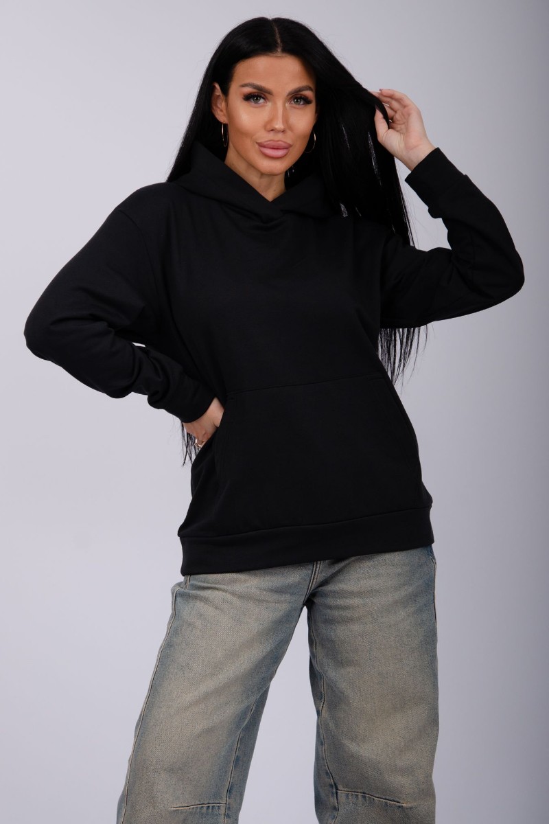 Худи женское "Ханна" футер 2-х нитка с начесом (р-ры: 44-56) черный