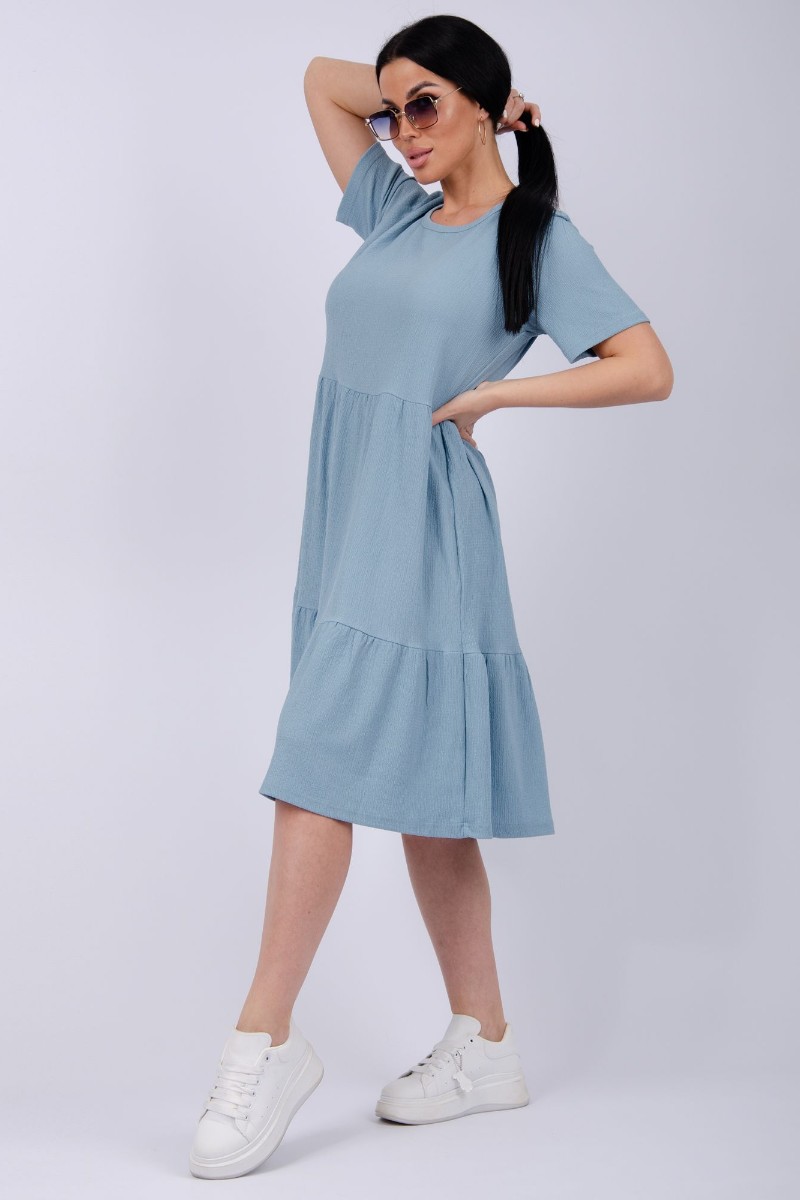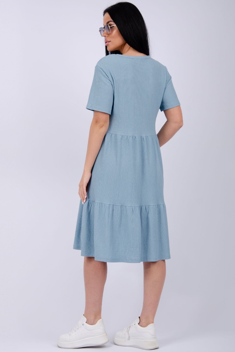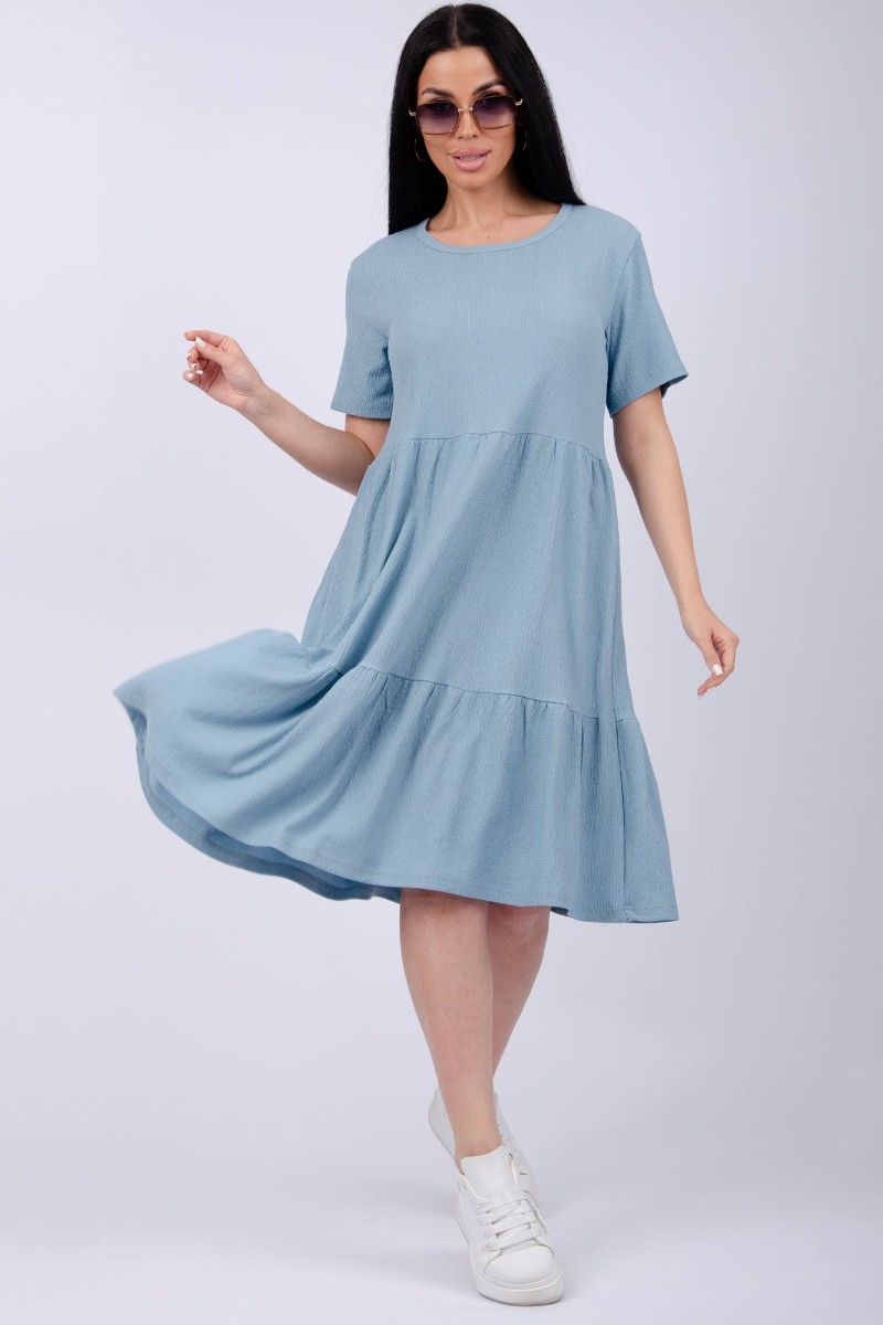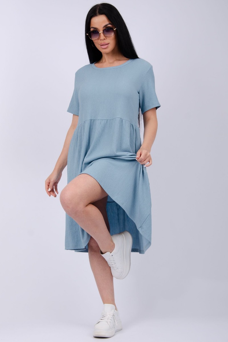 Представляем Вашему вниманию изящное женское платье миди, сшитое из приятной телу, лёгкой ткани "жатка". Это платье обеспечит максимум комфорта полную свободу движений в повседневной носке.