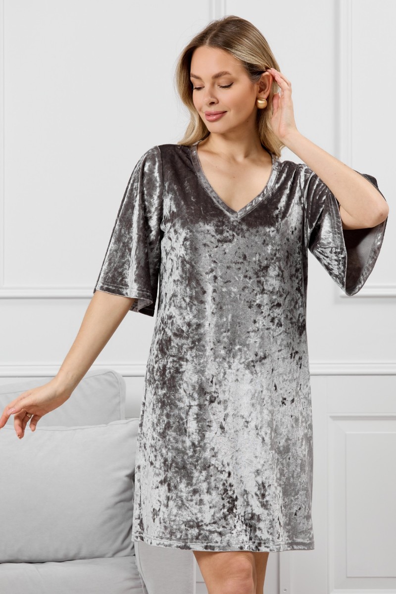 Туника женская "Мерцание-1" велюр стрейч (р-ры: 44-54) серый