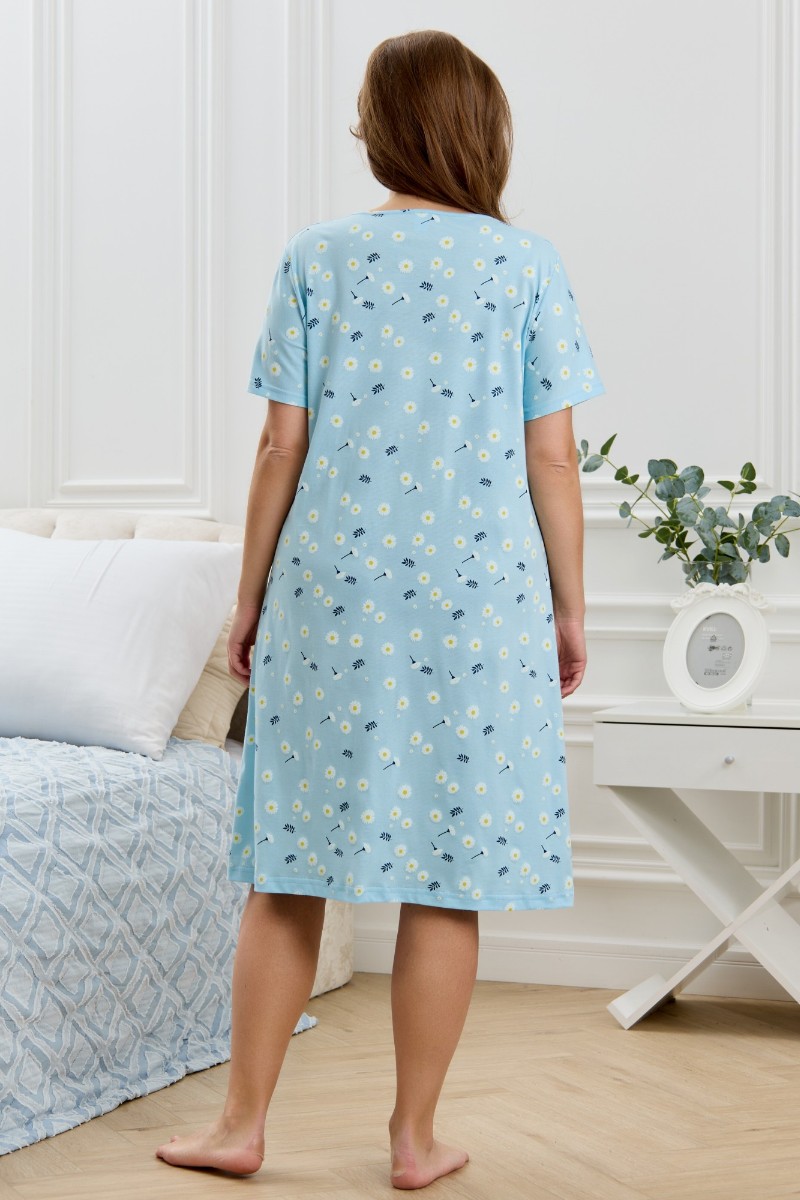 Представляем Вашему вниманию женскую сорочку из трикотажного полотна «кулирка» с набивным рисунком, свободного кроя, слегка расширенная книзу, с короткими втачными рукавами. Полочка – с двойными кокетками, кружевом в шве соединения кокеток с основной деталью и декоративной вставкой «петлей» для достижения небольшого эффекта драпировки. Основная деталь переда присборена по шву притачивания кокетки.