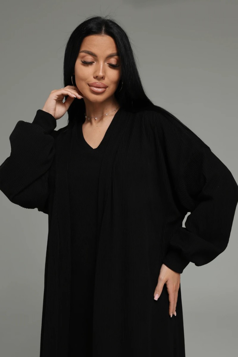 Костюм двойка женский "Леди" (платье и кардиган) кашемир лапша (р-ры: 48-58) черный