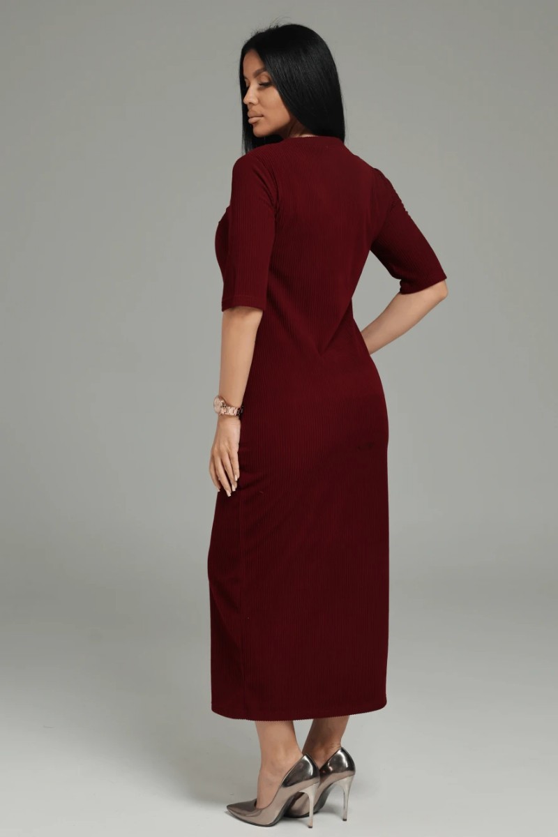 Костюм двойка женский "Леди" (платье и кардиган) кашемир лапша (р-ры: 48-58) бордо