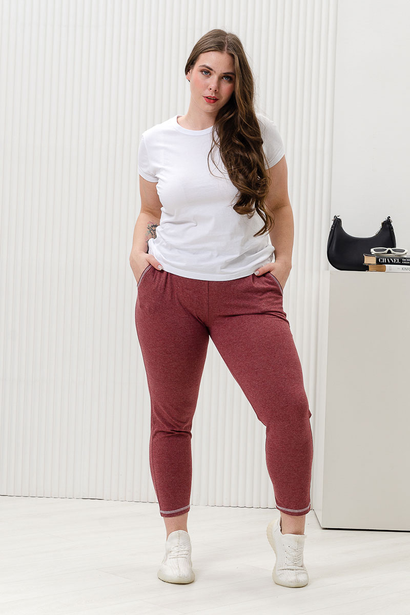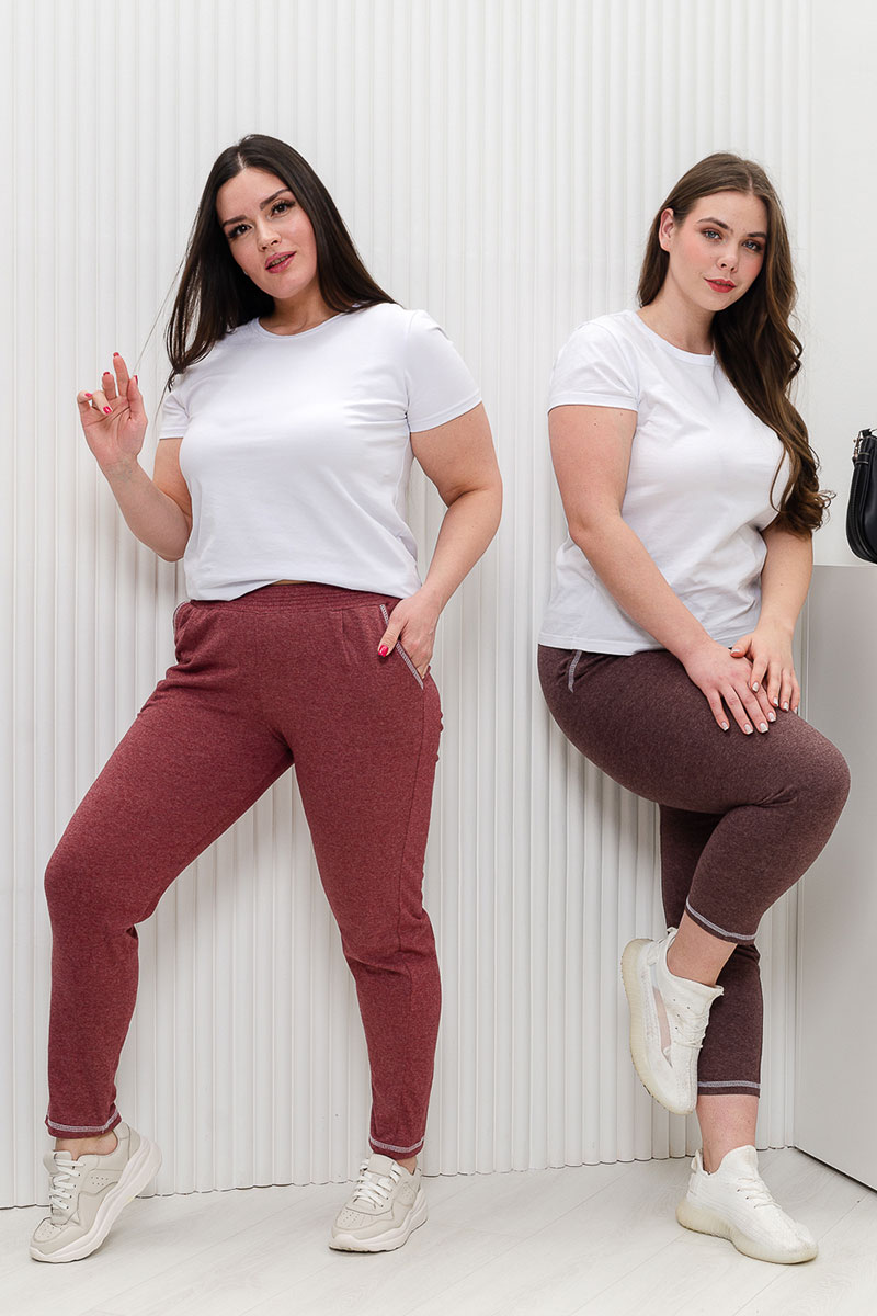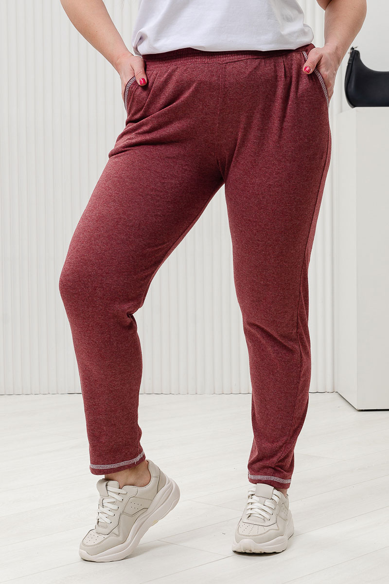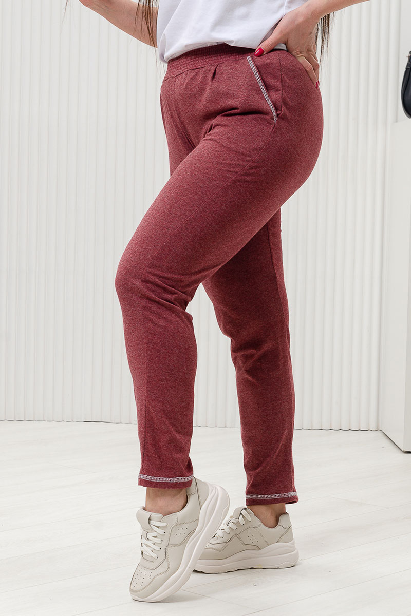 Брюки женские №7120 кулирка меланж (последний размер) бордовый 52