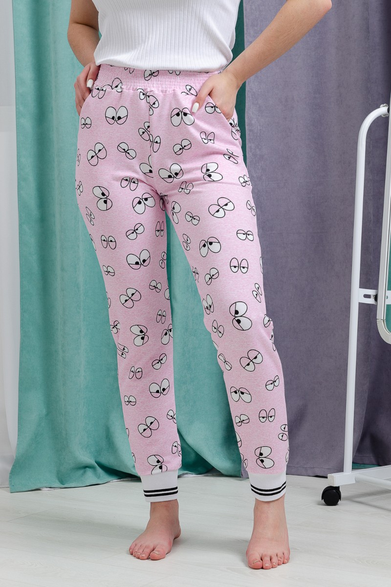 Брюки женские №8433 футер с лайкрой 2-х нитка (последний размер) глаза на розовом 56
