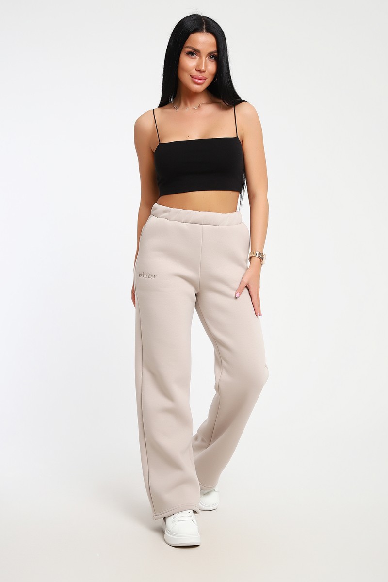 Брюки женские №82074 футер 3-х нитка с начесом (последний размер) светло-бежевый 48,52,56