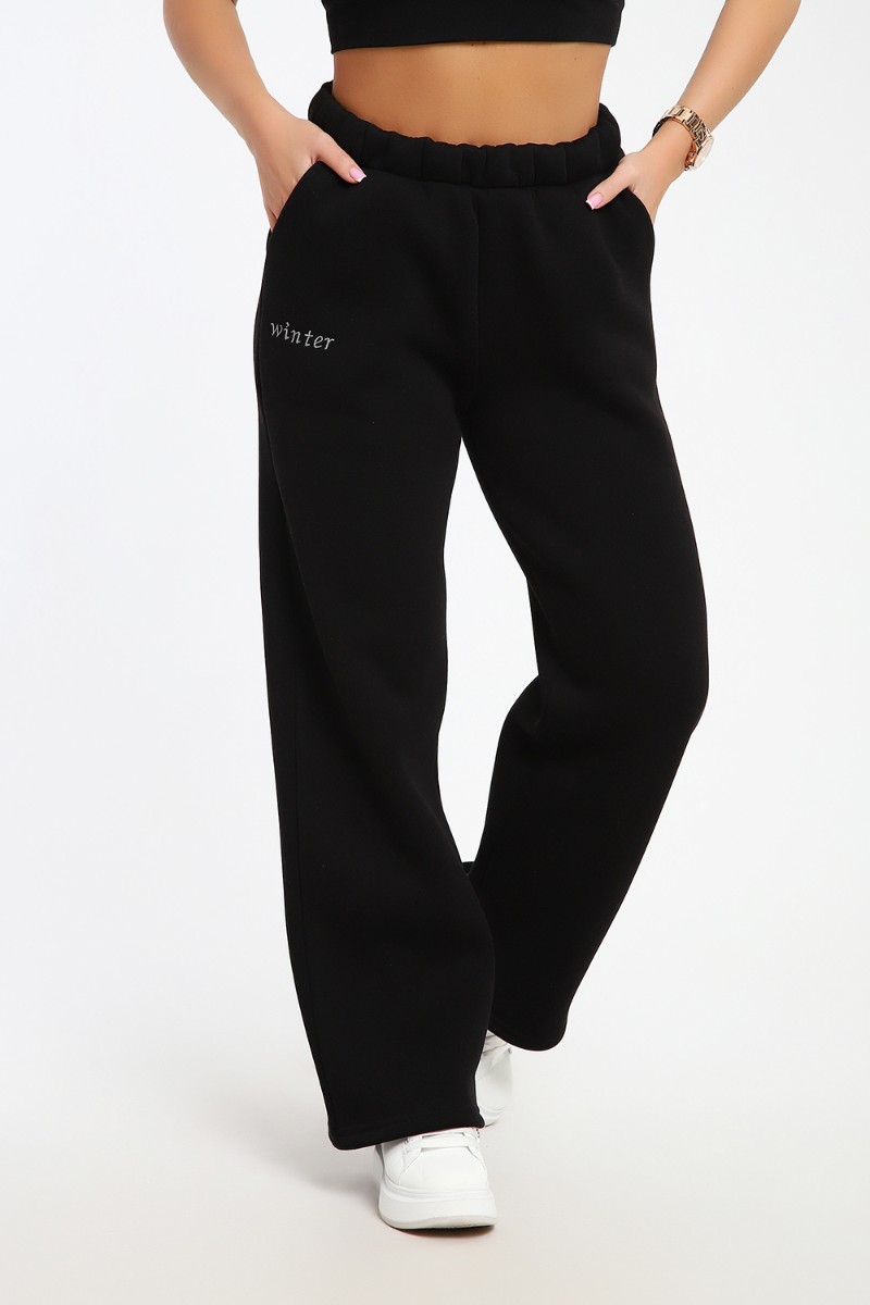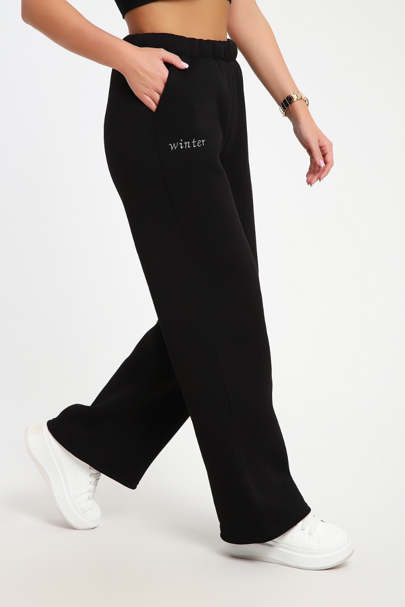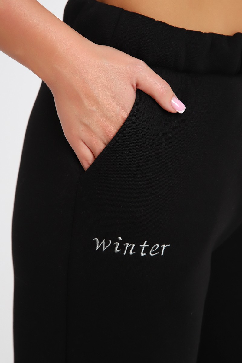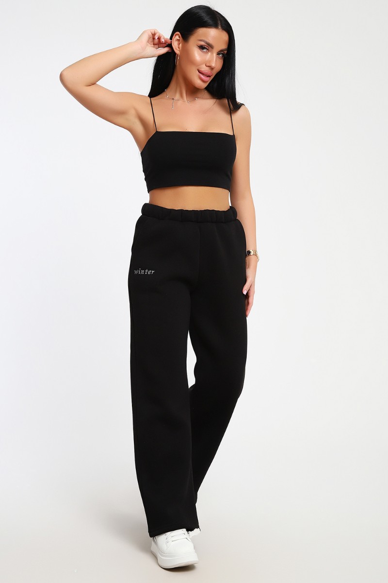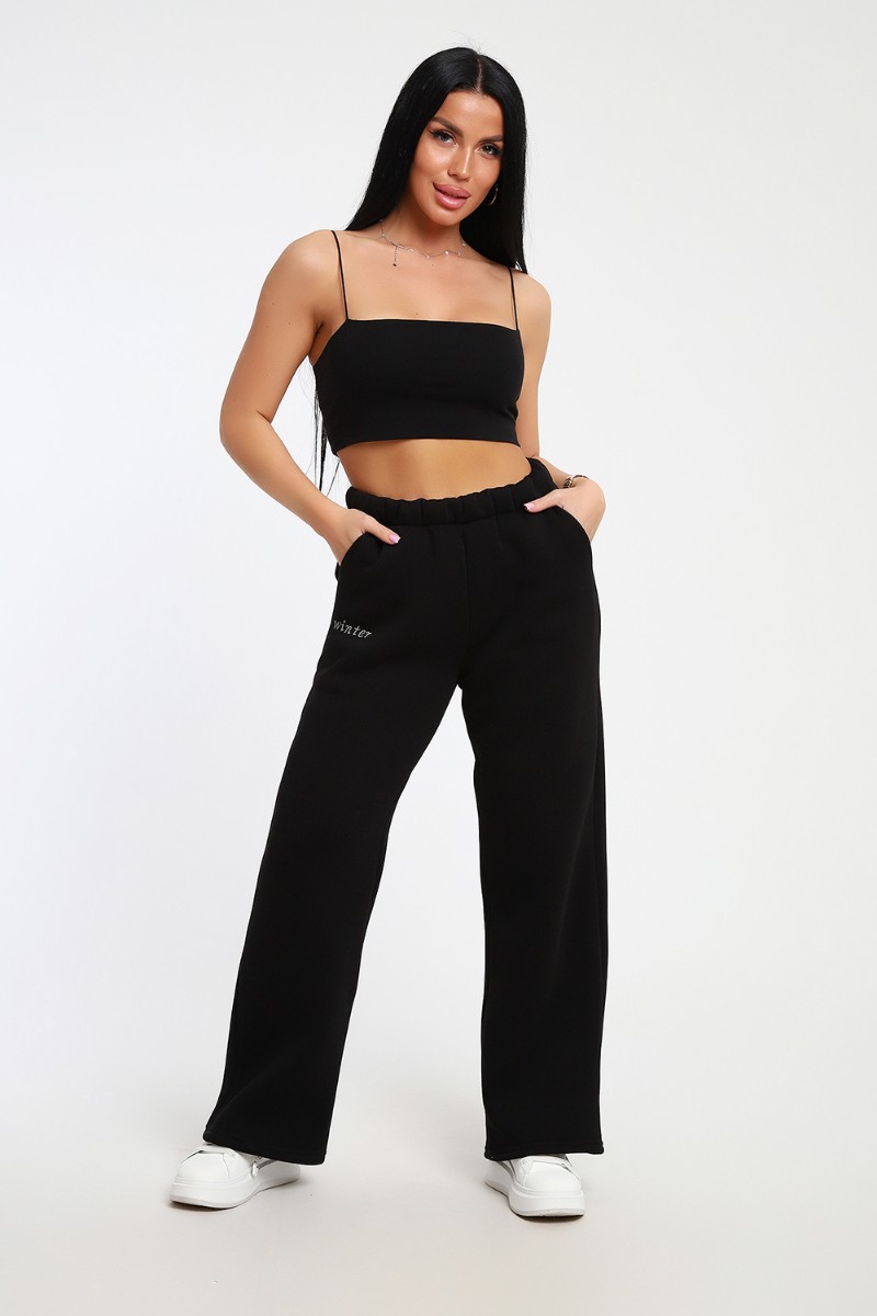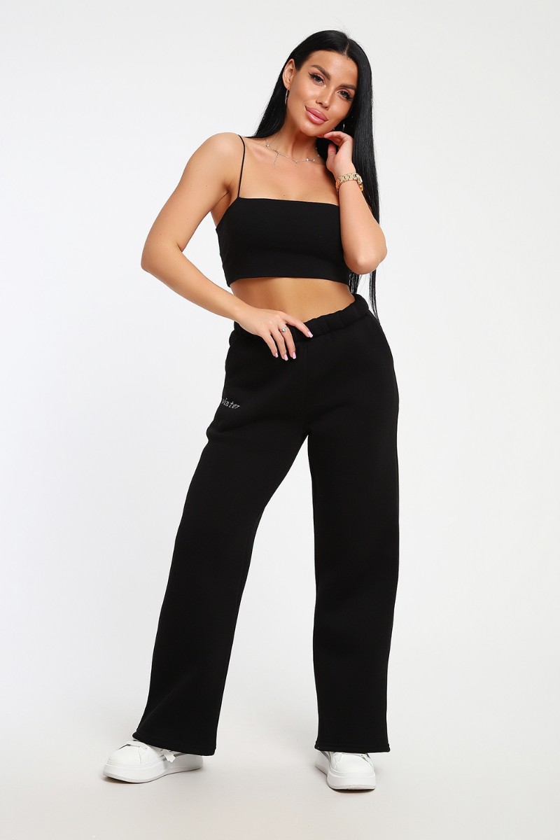 Брюки женские №82074 футер 3-х нитка с начесом (последний размер) черный 54