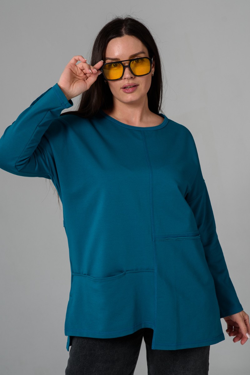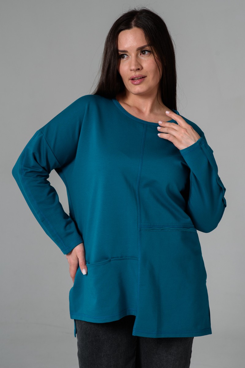 Туника женская №9160 футер с лайкрой 2-х нитка (последний размер) петроль 54