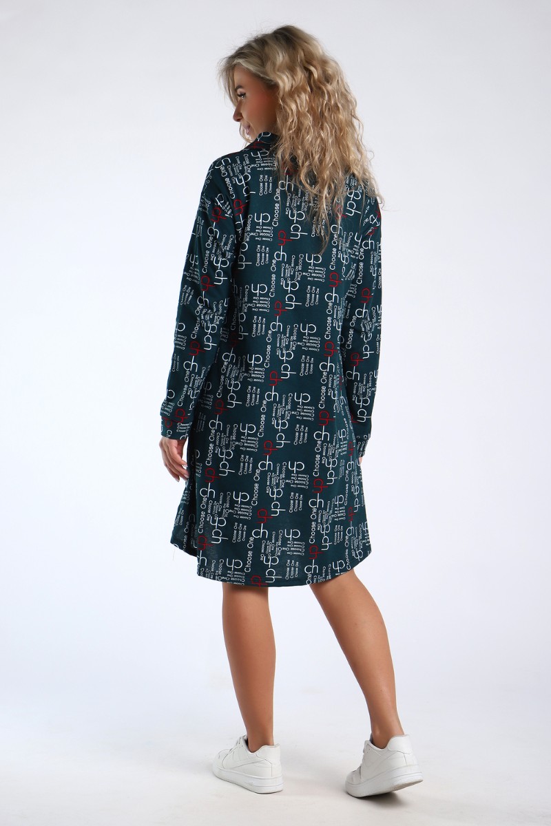 Представляем Вашему вниманию изящную женскую тунику. Расклешенная к низу, с удлиненной спинкой и рубашечным воротником. Рукава длинные, на манжетах.