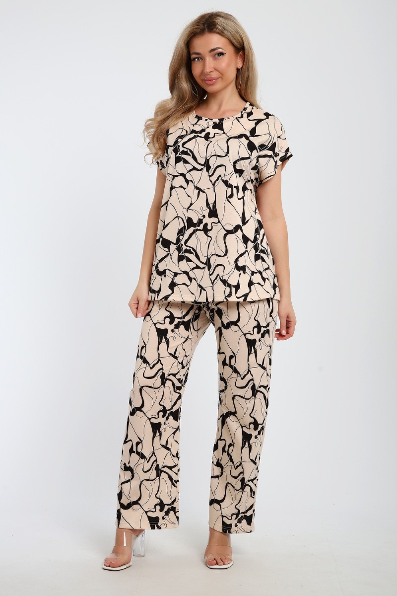 Костюм двойка женский №059 кулирка (последний размер) бежевый 52-54