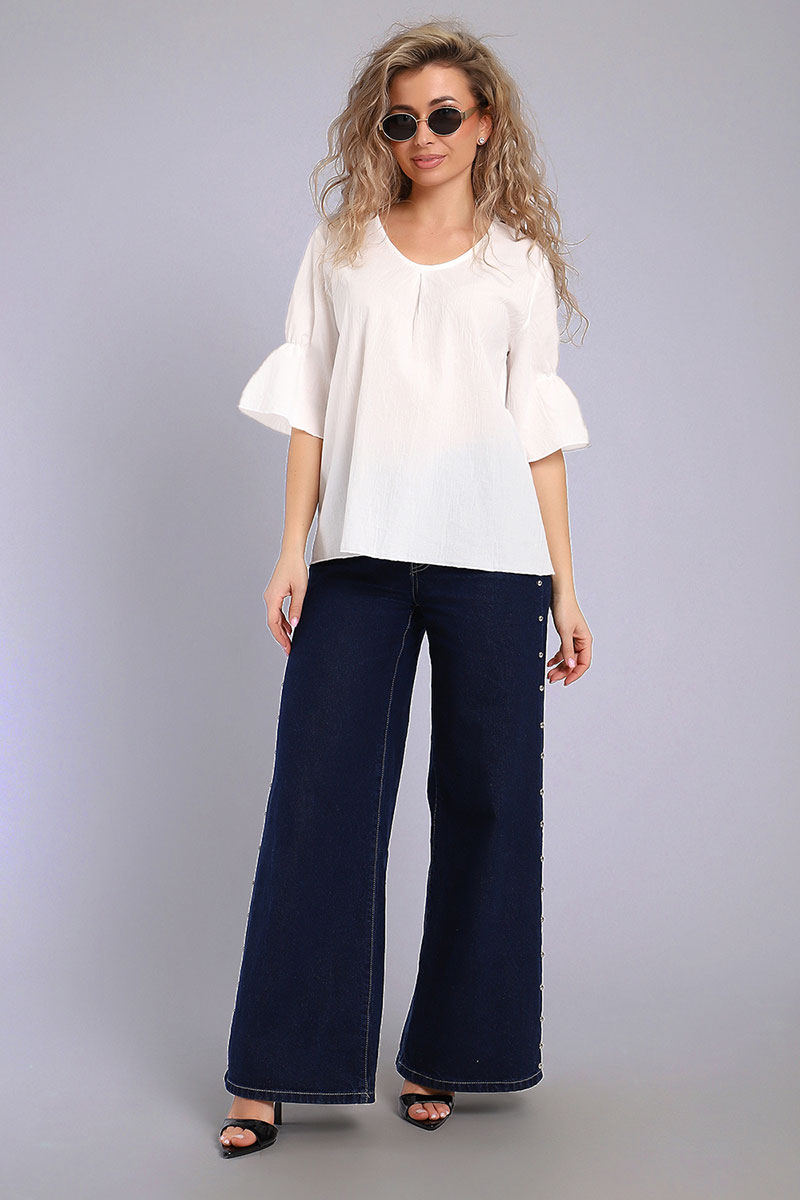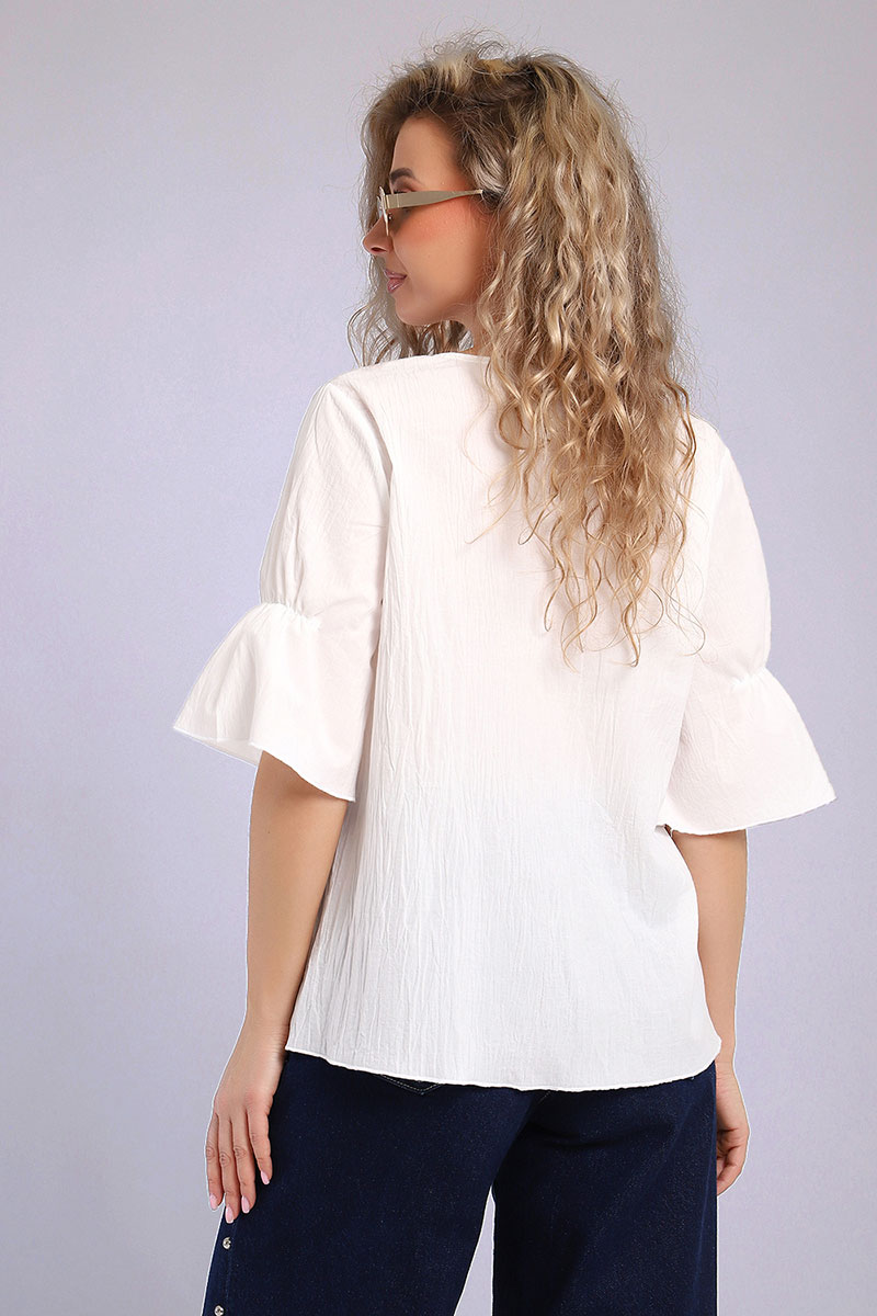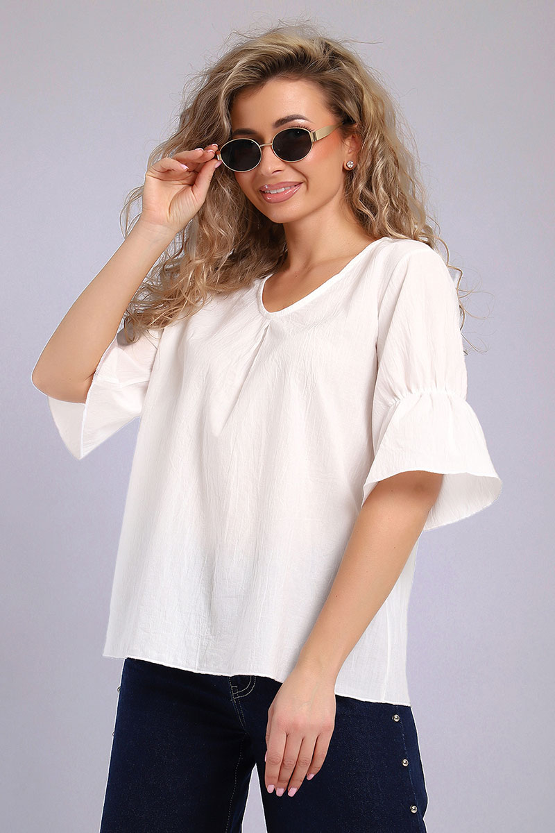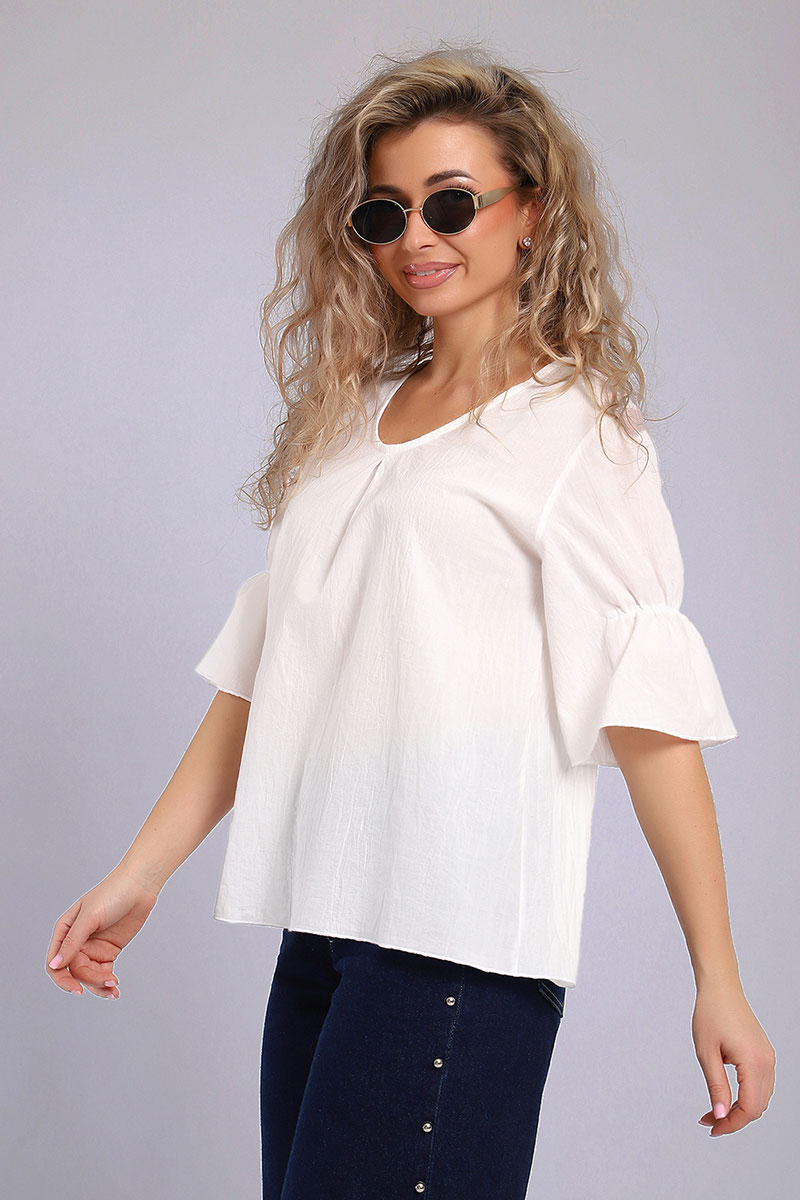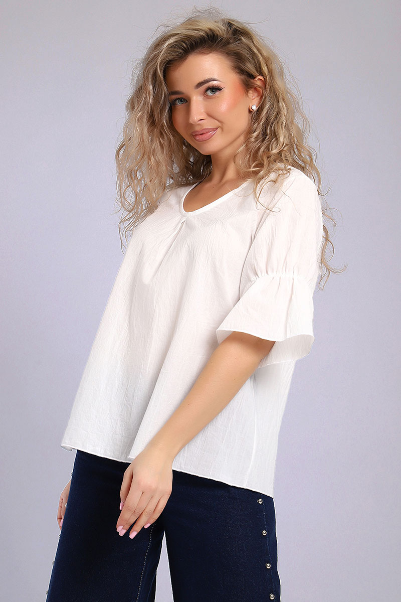 Блузка женская №32735 хлопок плательный (последний размер) молочный 46,48